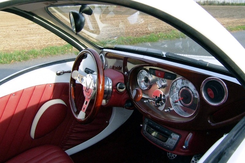 A l’intérieur, ce sont les détails qui font le charme de l’habitacle totalement étriqué, mais à la présentation digne d’un sac à main Louis Vuitton… et tout aussi inutile !