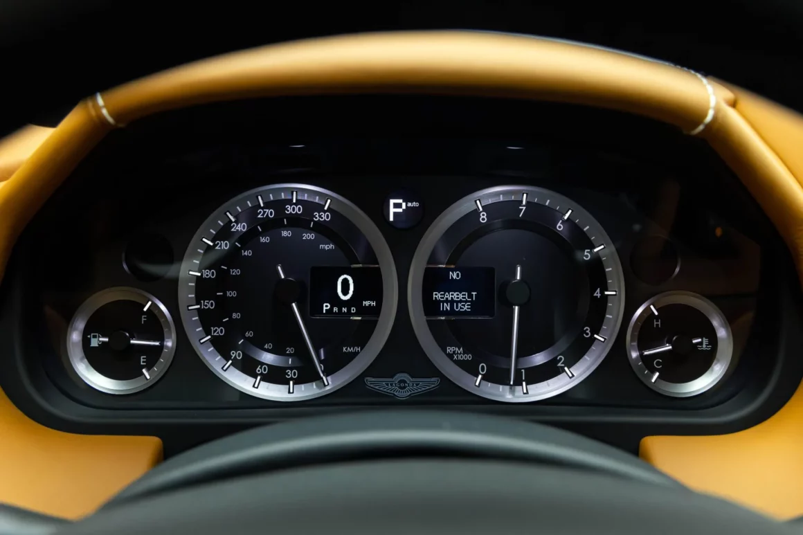 Ceux-ci sont accentués par des clignotants intégrés, des évents de capot en maille en titane argent et des badges Lagonda avant et arrière satinés. Des jantes de 10 po noir brillant à 20 rayons sont enveloppées dans des pneus Bridgestone Potenza 245/40 avant et 295/35 arrière. Le compteur de vitesse est gradué jusque 330 km / h et jumelé à un tachymètre à balayage inversé de 8 km/min avec affichage numérique encastré. Le moteur V12 de 6 litres a été partagé avec la Lagonda Rapide S contemporaine et, pour son application/utilisation dans le Taraf, a été évalué en usine à 540 chevaux et 6 650 tr/min et 465 lb-pi de couple à 5 500 tr/ min. Le système d’émissions et les programmes de gestion des moteurs ont été modifiés par J.K. Technologies en août 2019 pour se conformer aux exigences de l’EPA des États-Unis. La puissance est envoyée aux roues arrière via une boîte-pont automatique ZF à huit rapports montée en position centrale arrière pour optimiser la répartition du poids. Les options d’usine de la voiture sont énumérées sur la fiche technique ci-dessus avec les dates de commande et d’achèvement pour un prix de 1.077.235 $ plus taxes. Le 1 Mile de trop aura donc couté environ 1.400.000$ à son proprio !