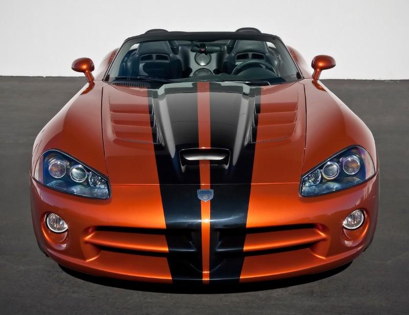 – Et je, je… Bon… Chrysler, écrivais-je en ce début d’article, à moins était-ce sur un autre panneau, je m’y perd…, va continuer à fabriquer des Viper V10 SRT… Pour célébrer la dernière année de production de la génération actuelle de Viper V10 SRT, Chrysler-Dodge propose une série limitée de cette voiture de sport emblématique américaine depuis 1992. Le cœur de la Viper V10 SRT reste le vénérable 8,4 litres (510cu.) V-10 qui produit 600 chevaux (450 kW) et 560 lb-pi (760 Nm) de couple, permettant le 0 à 100km/h en moins de 4 secondes, le 400 m départ arrété en 11-secondes… et une vitesse maximale de 340 km/h, continuant à démontrer le “Punch” de cette bi-place, inspirée de la course. Environ 500 véhicules seront construits pour 2010.