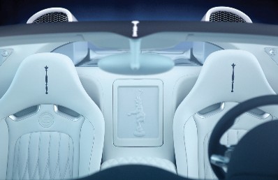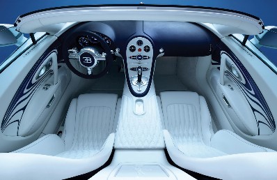 “De la porcelaine dans une voiture et qui plus est dans la décapotable la plus rapide du monde, cela peut sembler de prime abord une idée bizarre”, m’explique Stefan Brungs, Directeur Général de Bugatti…, “mais c‘est justement là ce qui caractérise la marque : ne pas reculer devant les idées les plus absurdes, mais accepter les défis et les réaliser en privilégiant la qualité et l‘esthétique. Nous sommes là tout à fait dans la tradition d‘Ettore Bugatti, qui a toujours aimé expérimenter de nouveaux matériaux. Outre les inserts en porcelaine signés situés au niveau du tunnel central, une incrustation en porcelaine remarquable se trouve sur la cloison arrière, entre les deux sièges. Comme les éléments en porcelaine de l‘extérieur, elle est également ornée du relief du célèbre éléphant dressé, créé par le sculpteur Rembrandt Bugatti, que son frère Ettore avait utilisé comme bouchon de radiateur sur la Bugatti Royale. Jusqu’à nos jours, cet éléphant est indissociable de la marque. Une magnifique coupelle en porcelaine prend place dans la console centrale. Pour la première fois, la Manufacture royale de porcelaine de Berlin a doté les arêtes de cette coupelle d‘une taille diamantée. Cette coupelle de grande valeur est amovible et offre, avec les porcelaines de la mallette pique-nique, créées elles aussi exclusivement pour cette Bugatti par KPM, une vaisselle de table des plus fines pour un piquenique raffiné”…