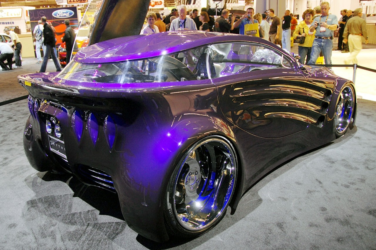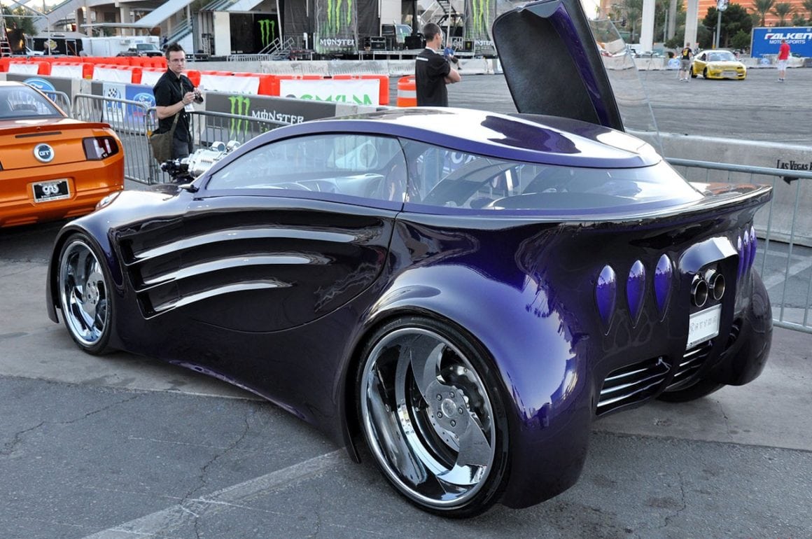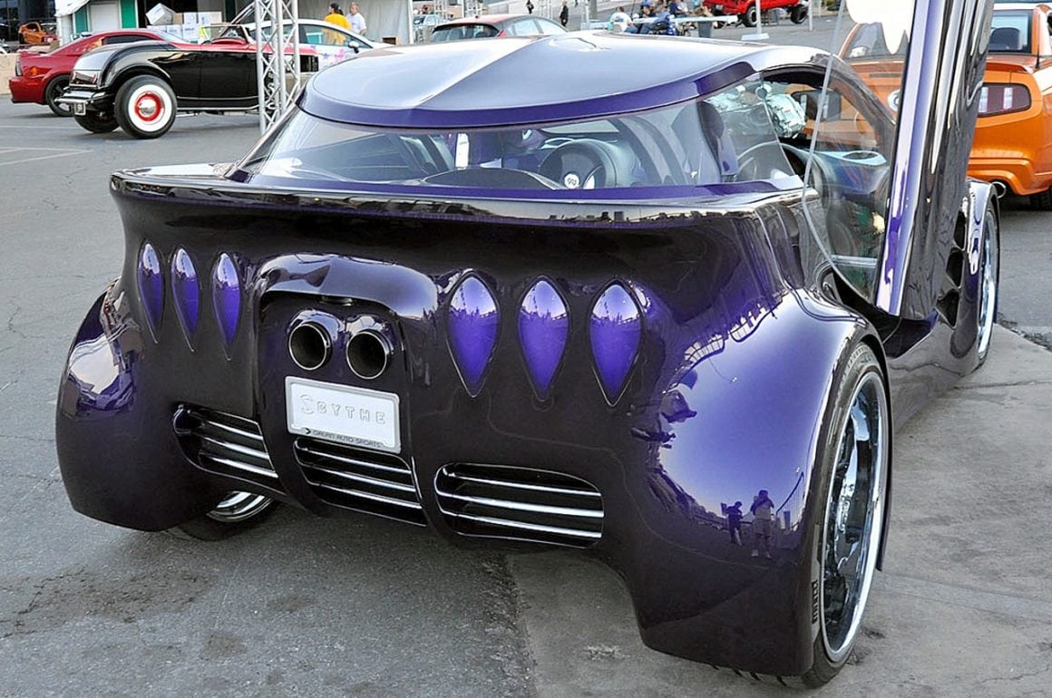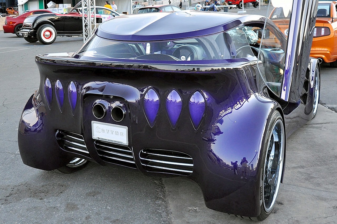 – Après tout, ce sont les mêmes gens qui vous apportent semaines après semaines dans l’émission TV Pimp My Ride, de quoi rêver ou vomir… en présentant des réinterprétations Customizées de voitures déjà pourries ! “Avec cette Galpin Scythe, nous avons décidé de mettre en valeur l’ensemble de nos capacités de fabrication”, m’a déclaré Beau Boeckmann.., “de la carrosserie façonnée à la main avec des matériaux composites, jusqu’aux commandes vocales à bord, sans oublier le système informatiquerégissant le bi-moteur V8, donc devenu V16, suralimenté de 1000 chevaux…, cette voiture a été construite entièrement par Galpin Motors”… Beau Boechmann a dévoilé le Scythe à un événemt médiatique ou étaient présents diverses célébrités inconnues (gag !) : Heck, Mark McGrath, Scott Baio, par exemple, étaient là. Le conducteur de la Galpin Scythe, entre-autres plaisanteries, pourra s’amuser avec la commande vocale Shuttle XPC et avec un ordinateur auto-connecté à un réseau 3-G, qui fournit en temps réel l’état du trafic, des nouvelles et des mises à jour météo. Encastrées à l’extérieur, des caméras de sécurité équipées de micros directionnels (gag !) qui remplacent les rétroviseurs classiques (sic !) permettent de saisir les regards horrifiés des passants et les hurlements de pleurs des enfants qui à la vue de cet engin perdent le contrôle de leurs fonctions corporelles…