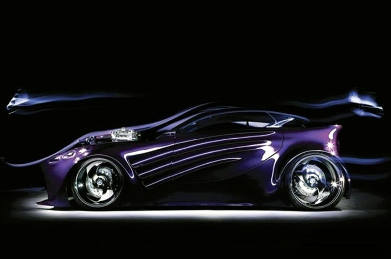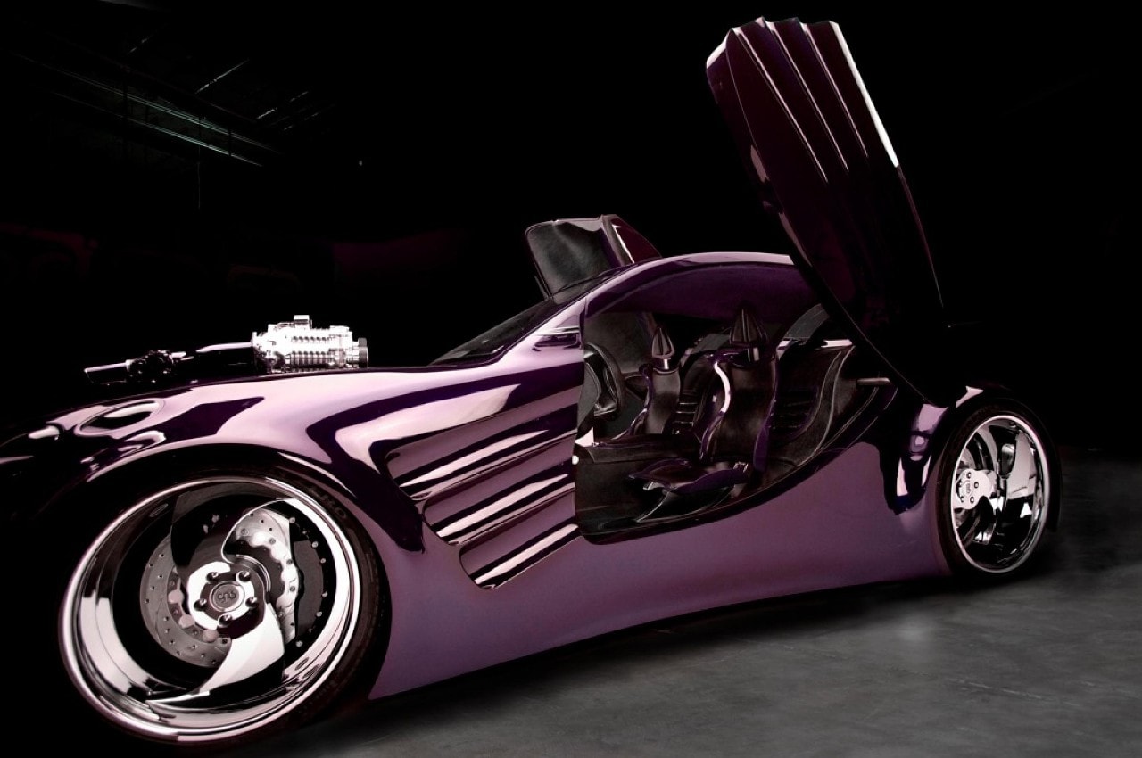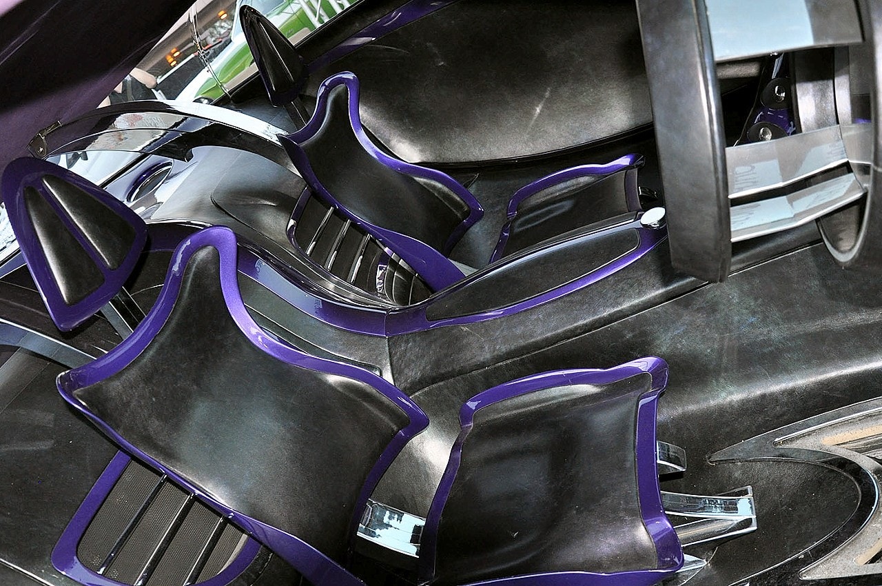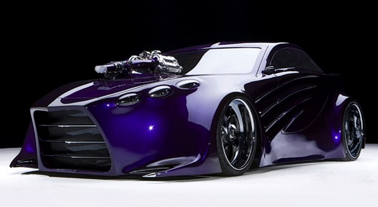 – Après tout, ce sont les mêmes gens qui vous apportent semaines après semaines dans l’émission TV Pimp My Ride, de quoi rêver ou vomir… en présentant des réinterprétations Customizées de voitures déjà pourries ! “Avec cette Galpin Scythe, nous avons décidé de mettre en valeur l’ensemble de nos capacités de fabrication”, m’a déclaré Beau Boeckmann.., “de la carrosserie façonnée à la main avec des matériaux composites, jusqu’aux commandes vocales à bord, sans oublier le système informatiquerégissant le bi-moteur V8, donc devenu V16, suralimenté de 1000 chevaux…, cette voiture a été construite entièrement par Galpin Motors”… Beau Boechmann a dévoilé le Scythe à un événemt médiatique ou étaient présents diverses célébrités inconnues (gag !) : Heck, Mark McGrath, Scott Baio, par exemple, étaient là. Le conducteur de la Galpin Scythe, entre-autres plaisanteries, pourra s’amuser avec la commande vocale Shuttle XPC et avec un ordinateur auto-connecté à un réseau 3-G, qui fournit en temps réel l’état du trafic, des nouvelles et des mises à jour météo. Encastrées à l’extérieur, des caméras de sécurité équipées de micros directionnels (gag !) qui remplacent les rétroviseurs classiques (sic !) permettent de saisir les regards horrifiés des passants et les hurlements de pleurs des enfants qui à la vue de cet engin perdent le contrôle de leurs fonctions corporelles…