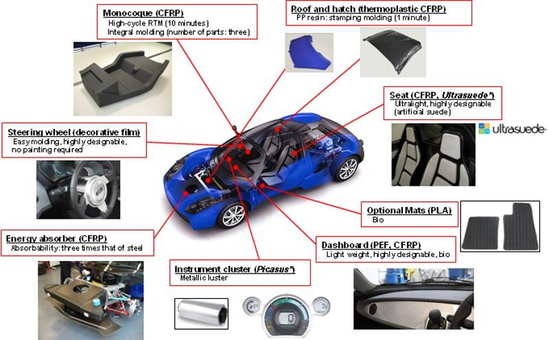 Le but de Toray est de faire savoir que l’industriel se prépare à la production de masse de CFRP (Carbon Fiber Reinforced Plastic) à l’horizon 2015, lorsque l’utilisation de ce matériau se répandra de façon importante dans l’industrie automobile.