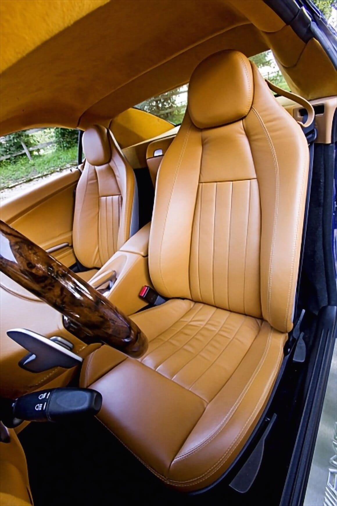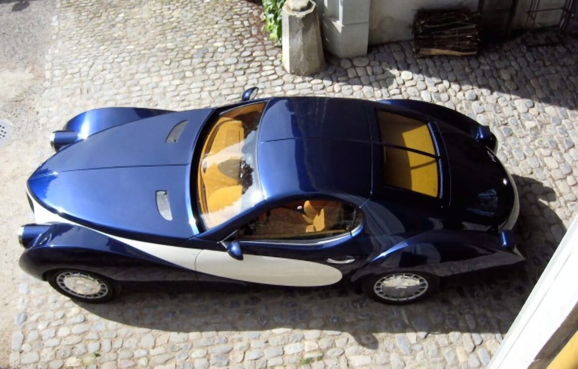 -Le “truc” était à-priori assez simple : utiliser des panneaux en polyester formant une sorte de clone de Bugatti Atalante et les repositionner en place des éléments de carrosserie d’origine, tout en conservant un maximum de la voiture “donneuse” : une Mercedes SLK 55 AMG neuve valant 110.000 francs Suisses (90.000 €uros) !