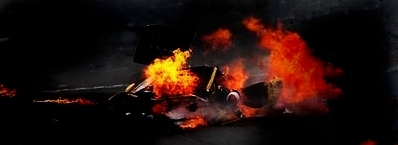 La chute de l’appareil lui indiqua du même coup, au profit du gisant, ravalé au rang de mannequin, la possibilité d’une suite utile à son embarras…, une étincelle malvenue, mit alors le feu au carburant qui s’échappait du réservoir de la Gallardo….