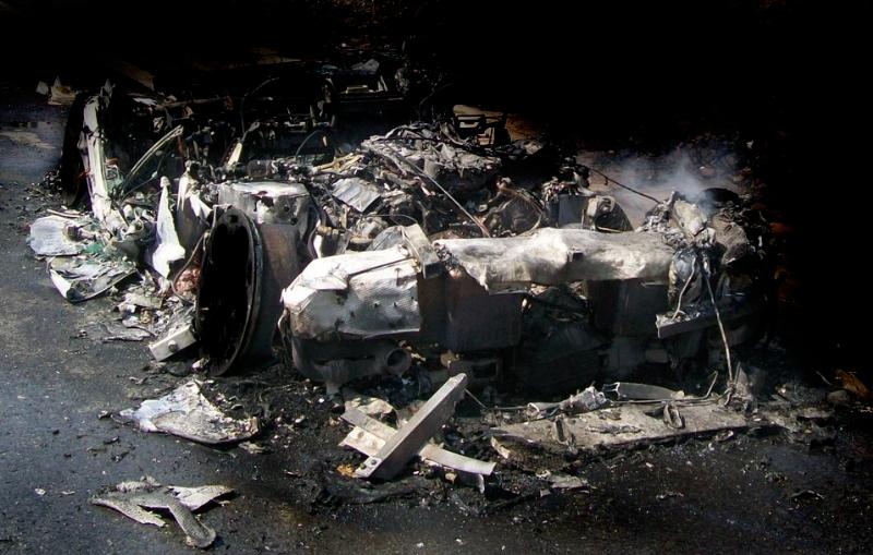 Retourné sur les lieux du drame, il s’est mis à ramasser les morceaux de son téléphone disloqué sous le choc…, ne pensant plus à mon sort funeste quoique probable…, le sien en fait…, la Lamborghini Gallardo a explosé au même moment.