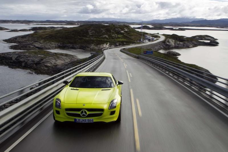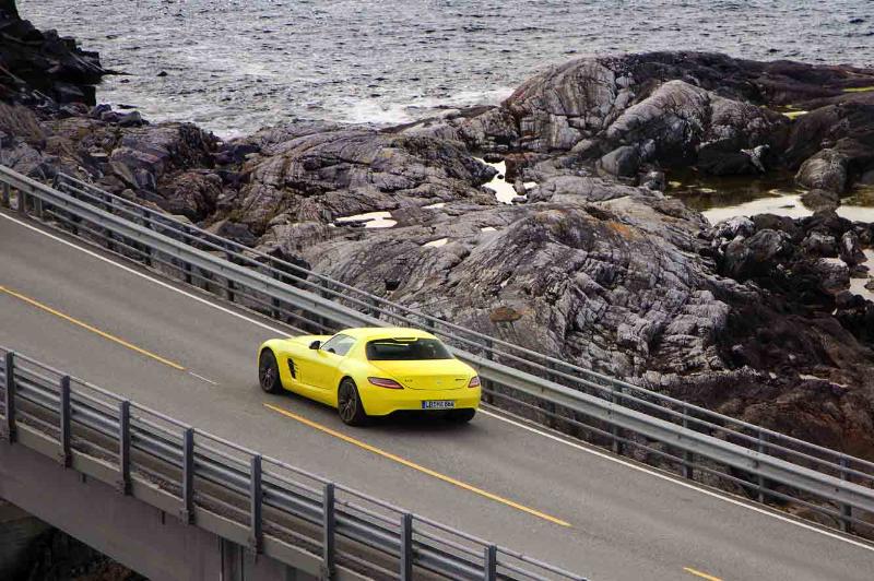 Rien n’est anodin dans la démarche de Mercedes, en ce compris la couleur jaune-verdâtrecologique de l’engin et surtout la qualité toute particulière des photos véritablement artistiques de haut niveau, qui plus est réalisées dans les pays nordiques réputés écologiques comme ici la Norvège (route touristique “de l’Atlantique”).