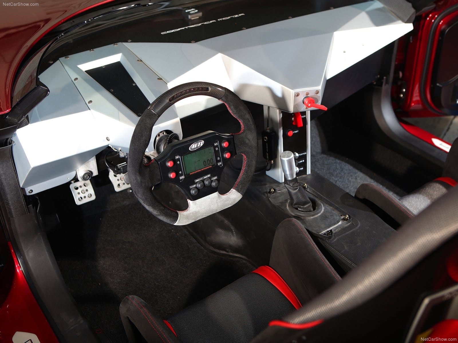 Sous l’effrayante robe de carbone, le châssis tubulaire en aluminium accueillait la base mécanique de Corvette Z06, LS7, 7 litres, V8, ici dans une version suralimentée forte de 720 chevaux ( 6200 trs/mn ), pour un couple dantesque de 950 Nm ( 4200 trs/mn ), associé uniquement à une boite manuelle 6 rapports.