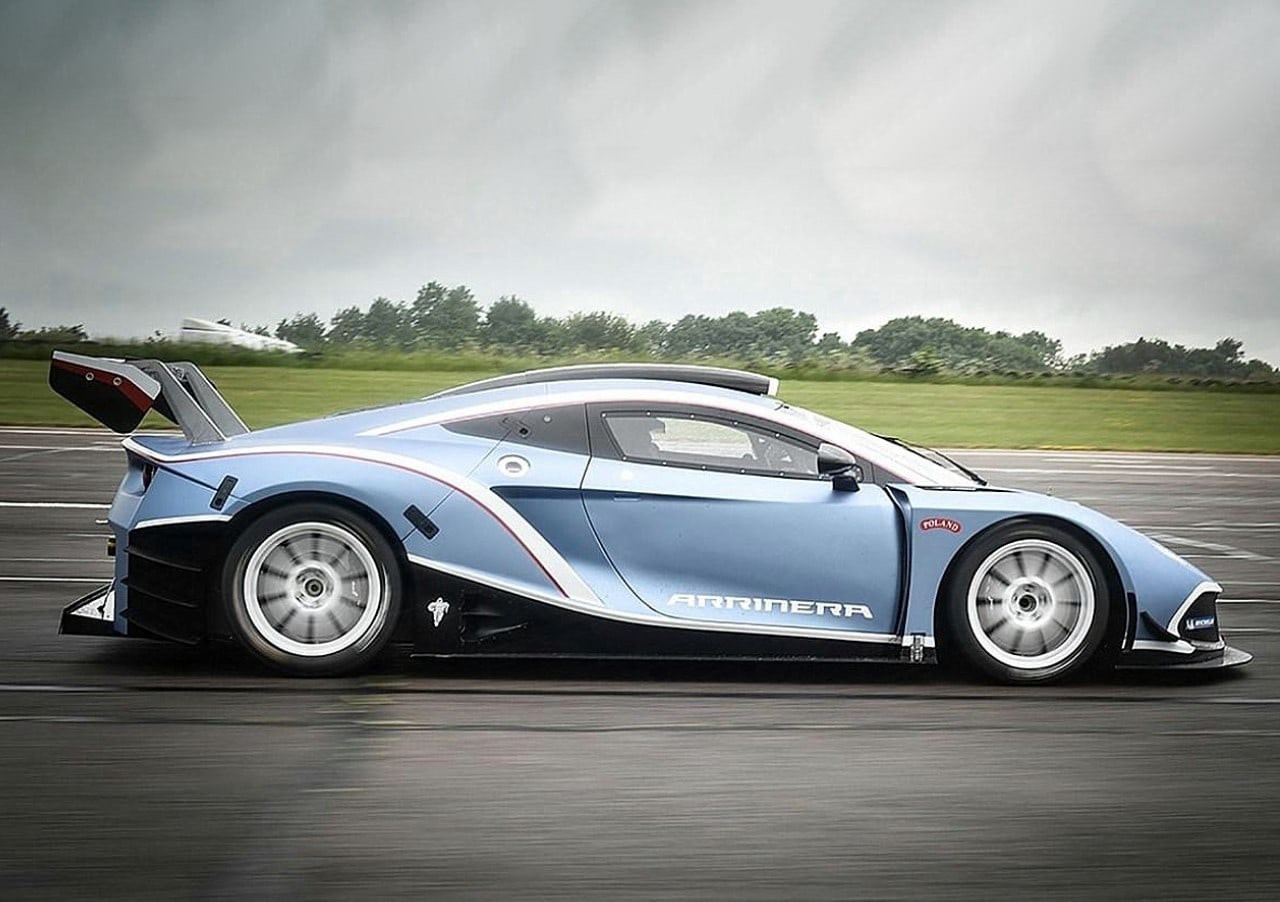 De 2012 à 2016 les “ceusses” d’Arrinera ont besogné leur prototype et récolté des fonds financiers, ce qui leur a permis de fabriquer la suite, encore plus folle… en faire une voiture de courses dingues (les courses et l’auto) sous des traits fermement inspirés (sic !) du style Lamborghini, une propulsion biplace à moteur central arrière, qui repose sur un châssis tubulaire en acier et se couvre d’une carrosserie réalisée en carbone Kevlar…
