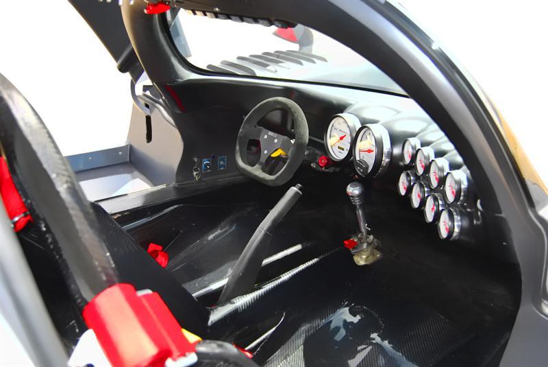 C’est aussi un contraste de voir le cockpit qui est inspiré par un des autres intérêts de Barnard : l’aviation…, construit sur un châssis monocoque fabriqué en aciers Domex et Docol !