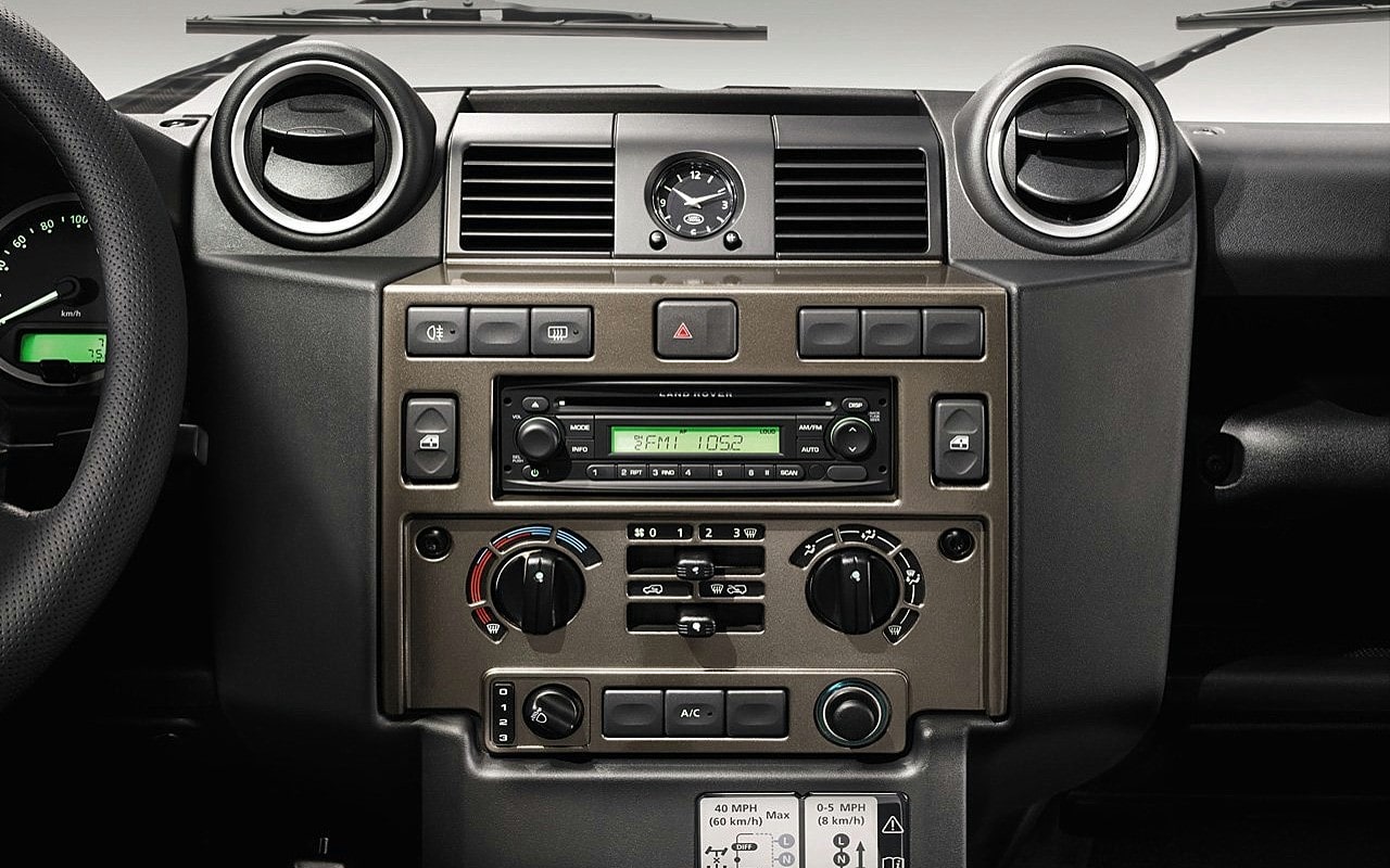 La 200 Tdi de 2,5L apparaît en 1990 et fait rentrer la Defender dans l’ère moderne avec une puissance enfin acceptable…, suivront en 1994 la 300 Tdi, suivie de la TD5 en 1998, un bloc cinq cylindres de 2,5L et 122chevaux, bardé d’électronique, ce qui fit hurler (à tort !) les puristes…, mais les changements les plus spectaculaires se situaient à l’intérieur, avec un nouveau tableau de bord venant remplacer celui qui datait de 1983.
