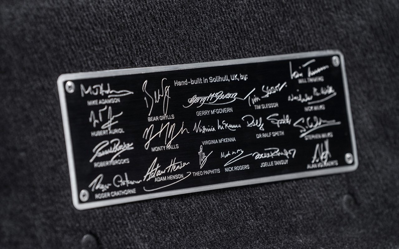 Le logo Land Rover est intégré en relief dans les appuie-tête avant tandis que les tapis de sol arborent le logo Defender…, pour une harmonisation parfaite avec l’extérieur de cette édition spéciale, le combiné d’instruments central est assorti à la couleur de carrosserie du véhicule par une même teinte de finition.