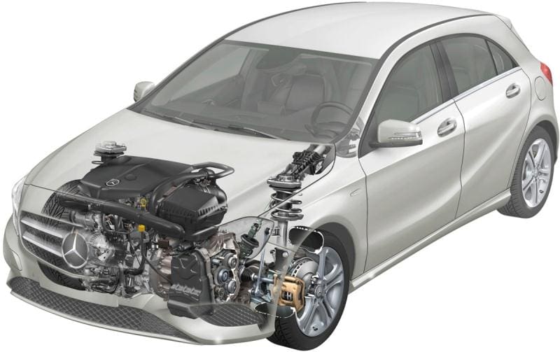 Mercedes à eu, en cette suite, une sorte d’illumination…, rêvant, imaginant, devinant, prophétisant, calculant…, que le marché des berlines premium compactes de haut de gamme devait en 2021 atteindre les dix millions d’unités…, d’où une soudaine volonté de repenser la stratégie du groupe pour mieux se positionner parmi les concurrents “premium”, du genre : Audi A3…, BMW série 1…, Volvo S40… et la toute nouvelle VW Golf VII (qui révèle une belle technologie pour 100 kg de moins).