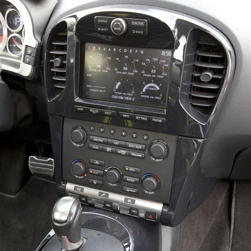 Le tableau de bord est modifié pour recevoir les différentes jauges, les cadrans et l’écran plat de la GT-R.