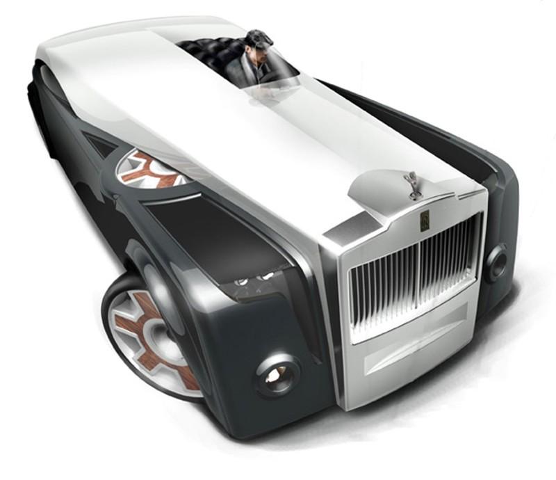 Dans cette vision cauchemardesque de notre devenir, cette Rolls-Royce serait une sorte de vaisseau piloté par une sorte d’Archange du design, une véritable tête de gondole quoi…