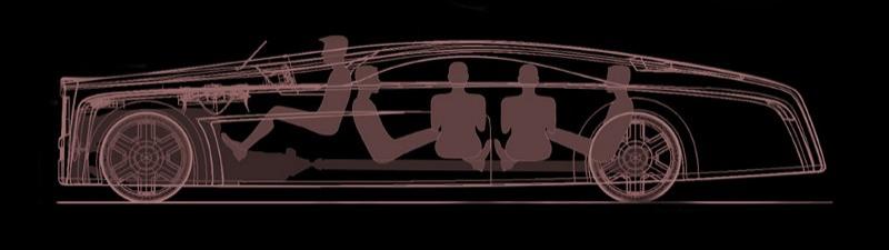 Longue de plus de 7 mètres, la Rolls-royce Apparition reprend toutefois les codes classiques de la marque, avec une calandre massive surplombée de la Spirit of Ecstasy, le tout dans un style rétro-futuriste tellement baroque qu’il ferait passer le concept Maybach Exelero pour une fade japonaise.