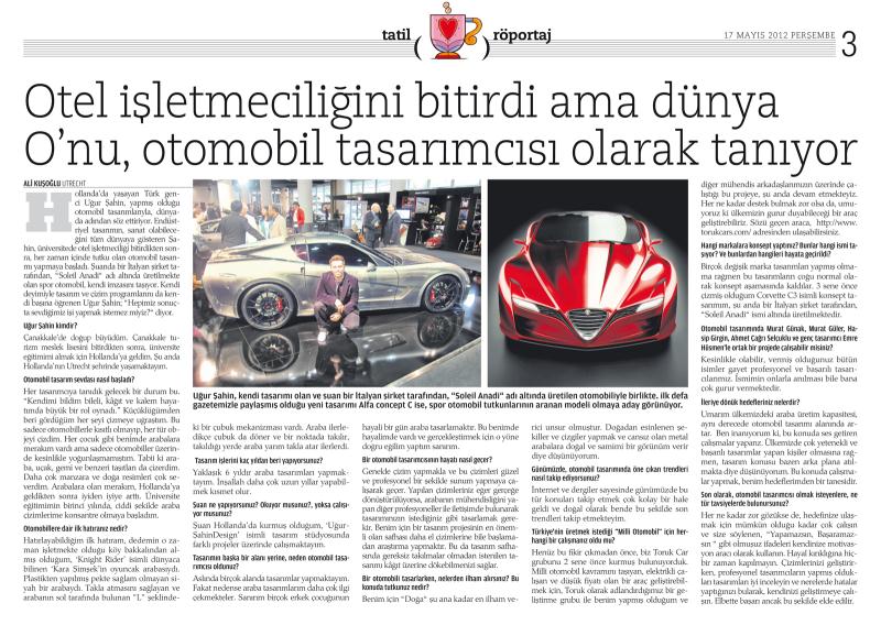 C’est du rêve éveillé cauchemardé d’illusions perdues…, du pur mélo, une sorte de drame rural glorifiant l’avancée de deux illuminés vers le progrès et des montagnes d’or… et où la modernité des divers concepts (qui se ressemblent tous), vient triompher de l’écrasante tradition des carrossiers et designers habituels… Un vain combat car la majorité d’entre-eux ont disparu dans des faillites cachées… ou ont été repris, intégrés dans des grands groupes…. Parmi les figures classiques de l’imagerie populaire, l’enfant des rues qui devient un designer célèbre, ça fait toujours pleurer dans les chaumières… Mais ici, on tombe dans un genre nouveau : l’automobile comique, au design pas très finaud, reprenant des thèmes universels, sans aucun égard avec les réalités, les besoins… et les envies réelles du public ! Les réalisateurs de ces concepts tous virtuels (sauf la Corvette maquillée en chef-d’oeuvre), ont manifestement été inspirés par ce qui se fait ailleurs, en y ajoutant une touche de science fiction turque. Tout a donc été passé à la moulinette turque et le résultat est… turc et curieux.
