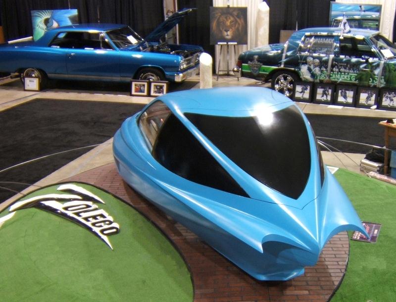 Beau parleur maniant parfaitement le verbe, pilote émérite sur le simulateur de désespoir qu’est un show automobile, en un tournemain, il eut donc tôt vite fait de persuader la belle venue faire son marché, que son engin aérodynamique était la promotion du siècle, à mettre rapidement dans un caddie sous peine de rater une belle occasion : “La voiture que j’ai décidé d’appeler la Zoleco est une combinaison de mon nom et le thème principal de ma voiture qui est respectueuse de l’environnement. L’objectif principal de mon projet est de conserver nos ressources énergétiques en créant un moyen de transport personnel qui minimise l’énergie nécessaires à la mobilité. J’ai fait cela en questionnant la nature dans la conception de sa forme… La forme d’une larme avec tous ses effets de rationalisation, est connue pour avoir une très faible traînée aérodynamique. Un des pionniers qui ont étudié et expérimenté l’aérodynamique automobile, était un ingénieur du nom de Paul Jaray en 1920. L’intégration de cette forme pour ma conception était un défi. La carrosserie a été conçue avec tous les aspects ergonomiques possibles, pour permettre d’y accueillir quatre personnes confortablement. Pour booster ces nouveaux avantages, ma voiture utilise de nouvelles technologies de freinage avec récupération d’énergie. Le résultat de cet exercice est une voiture de conception soignée, exotique, sportive, pratique, confortable, sûre, écologique, unique, agréable à conduire…, qui arpente les rues à la recherche dun nouveau demain !”…