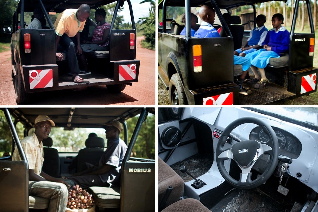 “Des services de transport efficaces sont fonction de la pertinence des véhicules eux-mêmes. Alors que le marché du transport en Afrique est vaste avec 60 milliards de dollars par an, il est déconnecté de l’industrie africaine avec 98% des voitures importées. Les centaines d’acheteurs et de services de transport aux utilisateurs finaux que nous avons interrogés à travers le Kenya ont besoin de véhicules abordables et fonctionnels, mais la plupart des véhicules à travers le continent ne sont tout simplement pas conçus à cette demande. Sans changement fondamental des véhicules à destination de l’Afrique et d’une amélioration du réseau de transport, les millions de ses habitants les plus défavorisés resteront isolés. Pour servir le marché africain, Mobius Motors a donc ré-imaginé la voiture africaine… et fortement simplifié les véhicules en excluant les technologies coûteuses tels que l’air conditionné, les luminaires d’intérieur et même en supprimant les vitrages latéraux, tout en maximisant la fonction des suspensions.. Le résultat est un véhicule avec la fonctionnalité clé d’une voiture tout-terrain apte à parcourir de longues distances sur des routes cahoteuses de terre, vendu à un prix similaire aux omniprésents pousse-pousses urbains motorisés à 3-roues, qui ne peuvent pas parcourir de longues distances de manière efficace. Mobius vise à habiliter les entrepreneurs de transport à travers l’Afrique non seulement avec des véhicules plus appropriés, mais avec le financement et le conseil aux entreprises nécessaires à l’exploitation d’une entreprise de transport durable. Ainsi qu’en exploitant les deux modèles existant, Mobius-1 et Mobius-2…, les entreprises africaines peuvent ainsi utiliser leurs voitures Mobius modulaires pour exploiter une gamme d’autres services tels que les autobus scolaires locaux, la livraison du courrier et les soins médicaux mobiles. La croissance endogène des entreprises de transport créera un changement systémique dans la capacité et l’utilité du réseau des transports en Afrique”.