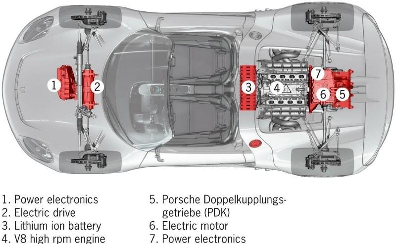 Un moteur électrique pour le train avant, un second pour le train arrière…, ainsi, avec son moteur essence, la 918 Spyder est la seule traction intégrale électrique du marché.