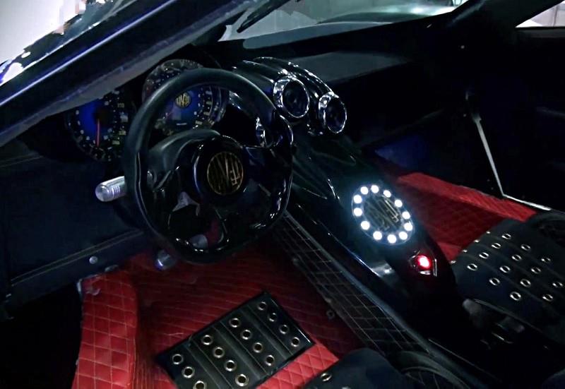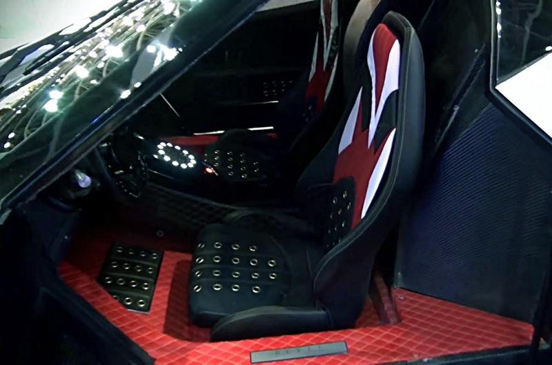 Son allure n’était ni belle, ni séduisante, elle était une sorte de mélange des genres qui associait : le design de la Lamborghini Veneno mélé au profil de la Zonda…, une console centrale de Koenigsegg…, un combiné porte instruments librement copié des productions Pagani…, des tuyères d’échappement inspirées de celles d’un avion de chasse (ou de la voiture de Batman)…, sans oublier les dorures et motifs baroques apposés ici et là.
