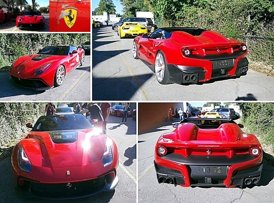 La première inadaptation d’une Ferrari F12 TRS au monde actuel, est un chef-d’œuvre de non-sens qui agite le web depuis que cet (mâle-heureusement) faux unique exemplaire est apparu pour la première fois lors des “Cavalcades Ferrari” en Sicile…, il s’agissait d’une version targa de la F12 Berlinetta, dénommée F12 TRS, qui avait été vendue plus de 4 millions d’€uros… sous le prétexte mensonger qu’elle resterait unique, alors qu’il était déjà programmé de la construire en série, limitée aux demandes de “ceusses” pouvant payer “un prix de fou”