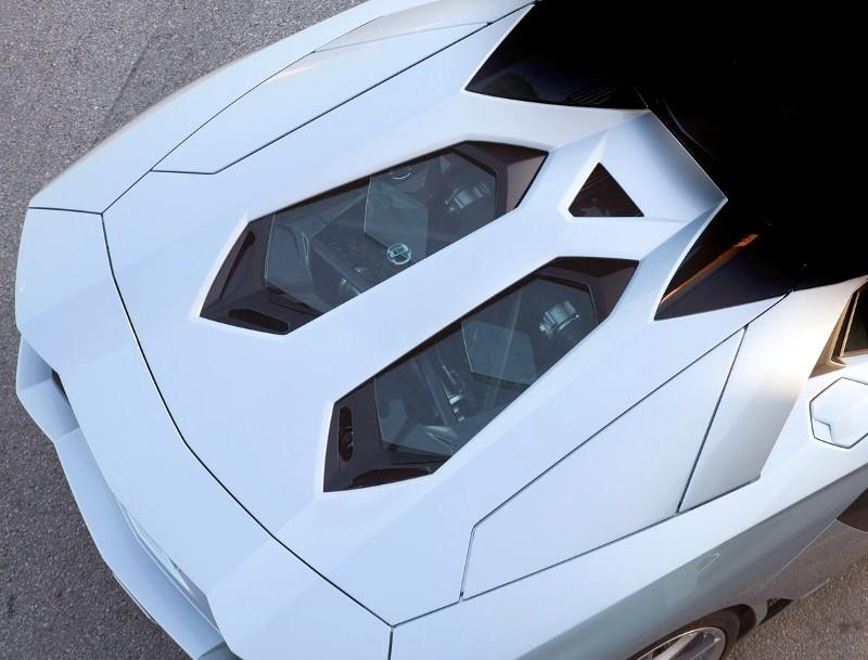 La Lamborghini Aventador Roadster est également équipée de fenêtres de portes (gag !) avec des bords biseautés qui sont sont censées assurer un ajustement parfait dans le joint hard-top !