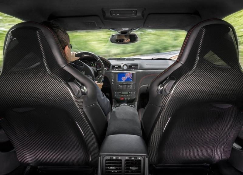 Pour lui donner l’air sportif (que des paroles !), les ingénieurs de Maserati n’arrètent pas, à chaque première mondiale, de supprimer divers éléments : l’insonorisation (-25 kg), la banquette arrière (-16 kg), l’air conditionné (-35 kg), les garnitures et tapis (-25 kg)…, les sièges-fauteuils (-80 kg) remplacés par des baquets à coque en carbone (+26 kg)… et de simplifier la carrosserie (-30 kg)…