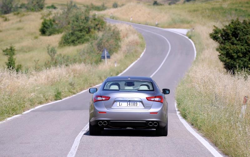 De plus, il est impératif de limiter le couple qui passe uniquement sur les roues arrière, l’équilibre général de la voiture tel que décrit dans la farde de presse est sans cesse remis en cause par des embardées difficilement contrecarrées et il faut bien imaginer qu’un tel paquebot, même aux réglages de suspension sportifs, n’est pas aussi agile qu’une Ghibli…, il faut donc la conduire sur le couple, en douceur et la réserver à un usage démonstratif en ville, avec vitres fumées en prime, ou, plus prosaïquement, pour de longs parcours autoroutiers en respectant toutes les limitations de vitesse.