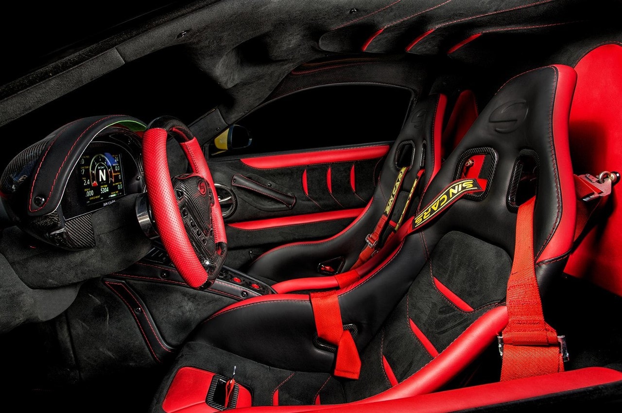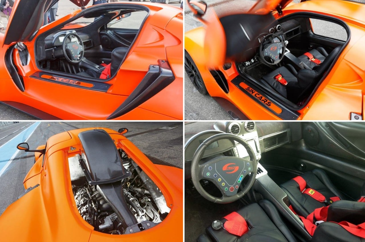 Dotée d’un châssis tubulaire, la R1 pèse 1200 kg, un chiffre qui impressionne d’autant plus lorsque l’on jette un coup d’œil aux différentes puissances proposées : 430, 530 et 650 chevaux…, pour les obtenir, Sin Cars est allé emprunter à GM plusieurs V8 Corvette afin de les mettre sur sa R1 en position centrale arrière.