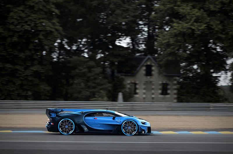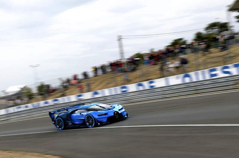 “Puisant son inspiration dans les faits marquants de son histoire, la Bugatti Vision Gran Turismo tire ses racines de la Bugatti Type 57G Tank, celle qui a remportée les 24 Heures du Mans en 1937. A l’image de cette dernière, la supercar virtuelle a hérité de la finition bleu à deux tons. Toutefois, cette sportive reprend également les éléments graphiques de la marque. On retrouve ainsi une calandre typique de Bugatti en forme de fer à cheval, des appendices aérodynamiques et quatre sorties d’échappement. Taillée pour la course, elle dispose d’une console centrale à interface tactile à l’intérieur. Cerise sur le gâteau, le tableau de bord est agrémenté d’une carte de circuit des 24 Heures du Mans”..., à mourir de rire !