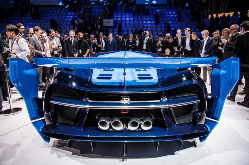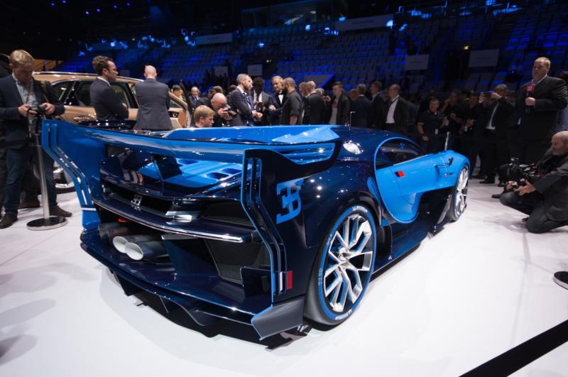 Première mondiale pour un show car d’un genre particulier : en exclusivité pour la 66e édition de l’IAA (le Salon de l’automobile de Francfort 2015), le groupe VW a fait sortir sa Bugatti Vision Gran-Turismo du monde virtuel fait d’octets et de pixels… et l’a convertie en un bolide en carbone spécialement développé pour la série de jeux vidéo Gran-Turismo sur PlayStation, afin de soi-disant “remercier ses millions de fans de par le monde pour leur fidélité et leur enthousiasme”…