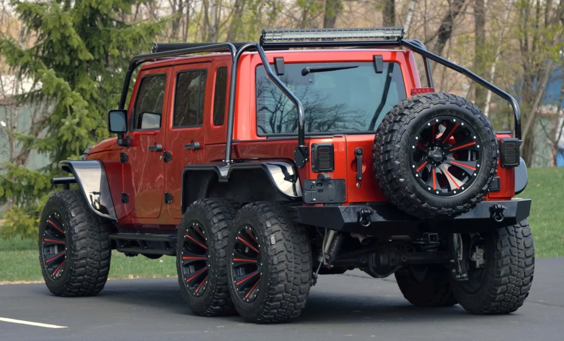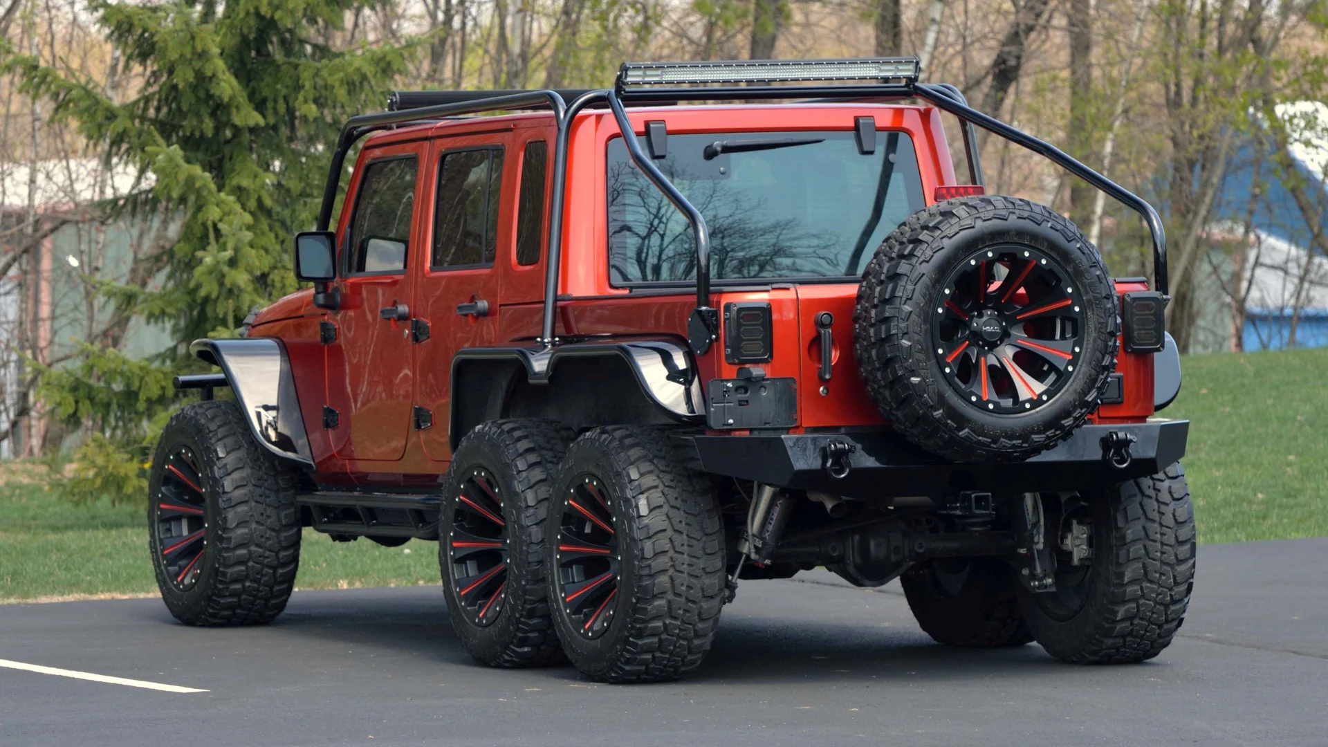 Pourtant c’est bel et bien la Jeep Wrangler qui est pionnière dans la catégorie elle existe en effet depuis des lustres en version à empattement long et même en carrosserie Pick-up. Il ne fallait donc pas énormément de travail pour qu’un préparateur décide de lui ajouter un essieu supplémentaire pour en faire un six roues. Ceux qui connaissent le SEMA Show le savent. Le dernier présenté était d’ailleurs également boosté par un V8 Hellcat de 707 chevaux.