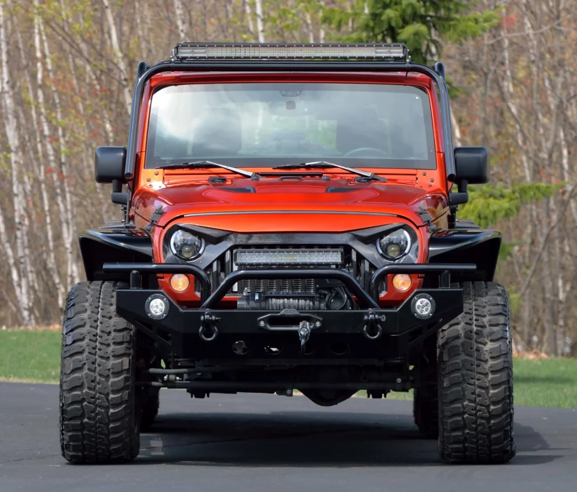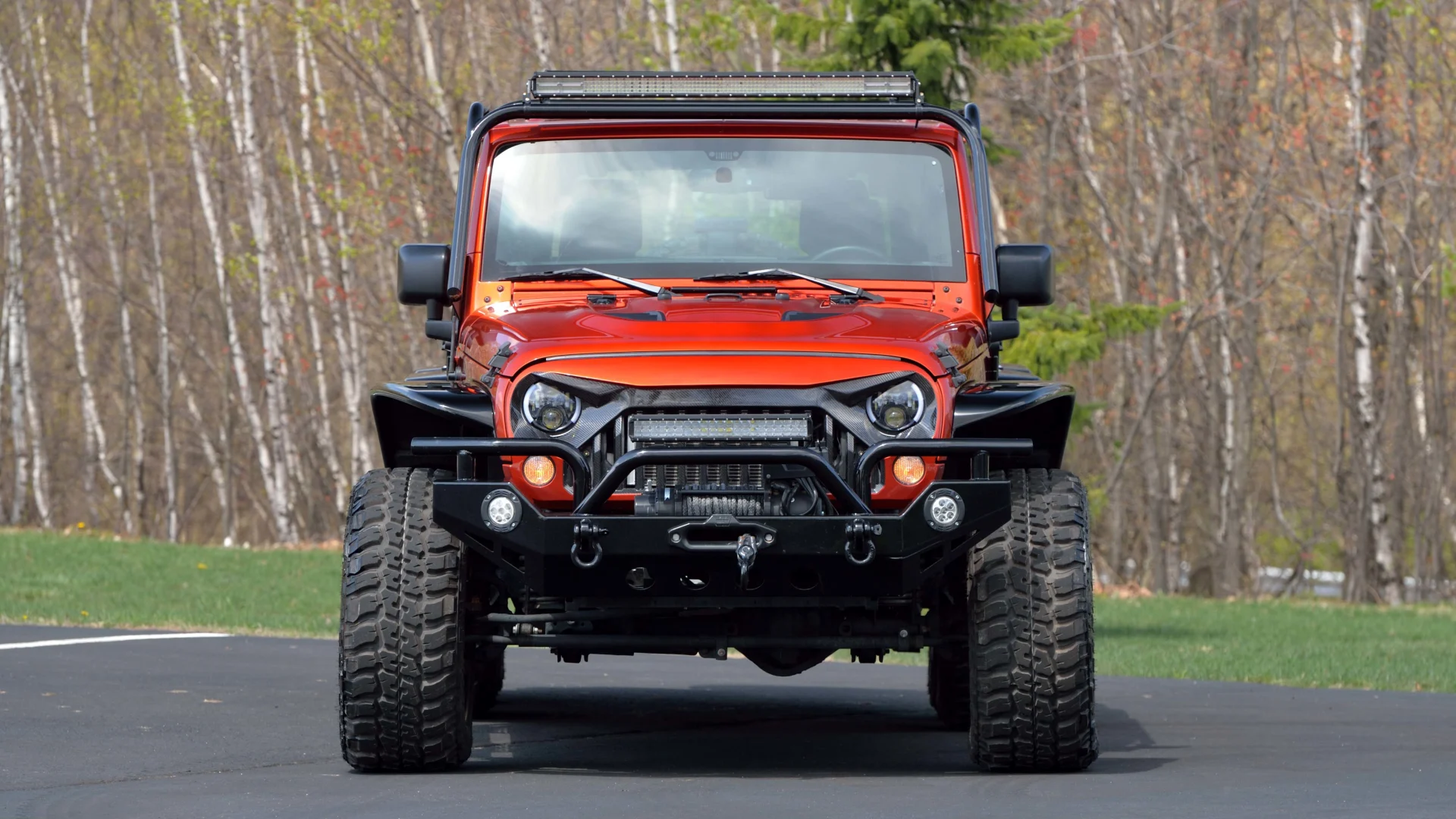 Ces éléments sont des pare-chocs en acier plus solide avec des crochets de remorquage utiles, un porte-pneus disposant d’un poids nominal plus élevé, des glissières de roche allongées pouvant réellement supporter le poids du Wrangler 6X6, un capot ventilé et bombé pour laisser la place au V8 Dodge SRT Hellcat… et bien plus encore, y compris des améliorations sur à peu près tout en sus du moteur.