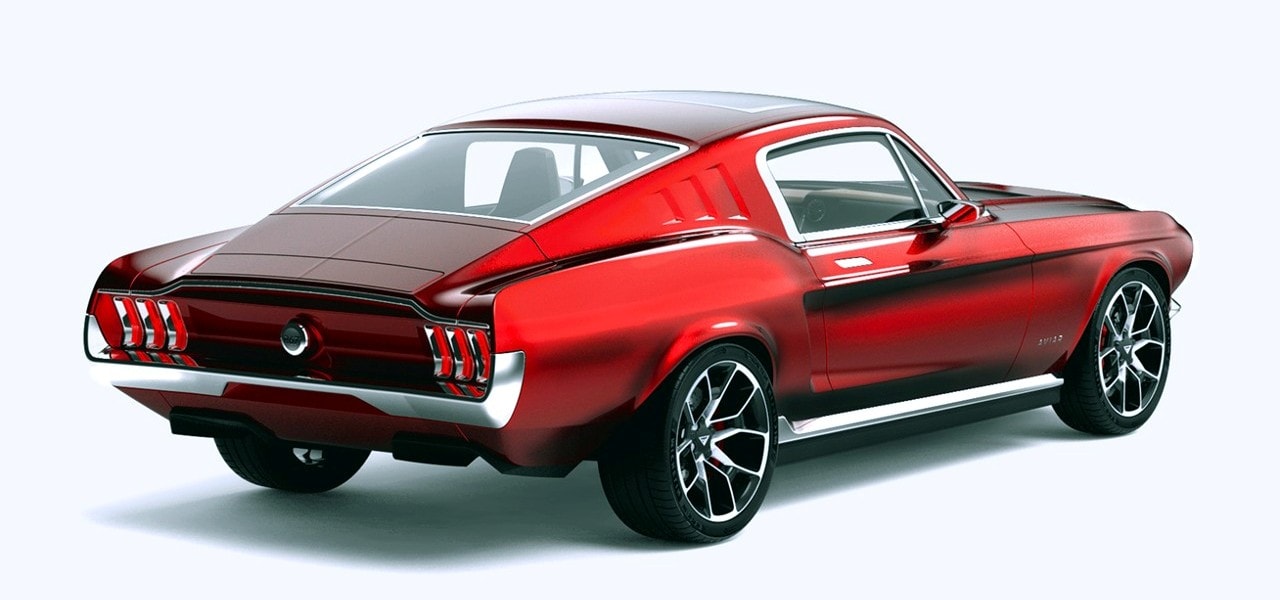 L’Aviar R67 qui n’existe que virtuellement, est donc imaginée reconstruite sur la star américaine des voitures 100% électriques actuelles : la Tesla Model S. On doit cette pony-car à piles à Aleksey Rachev, le fondateur d’Aviar Motors… Il n’est donc pas du tout question de rétrofit pour cette Mustang !