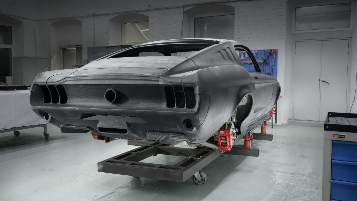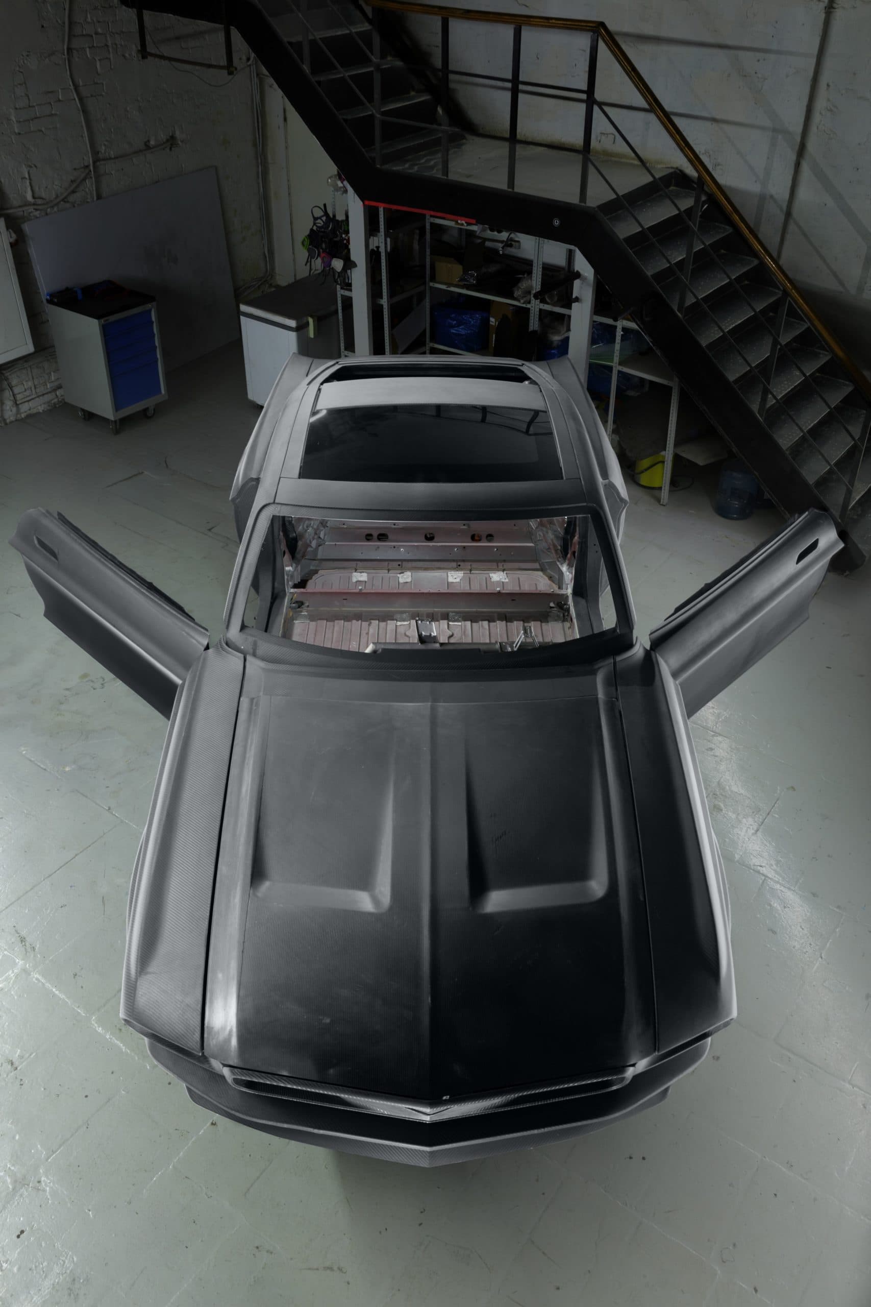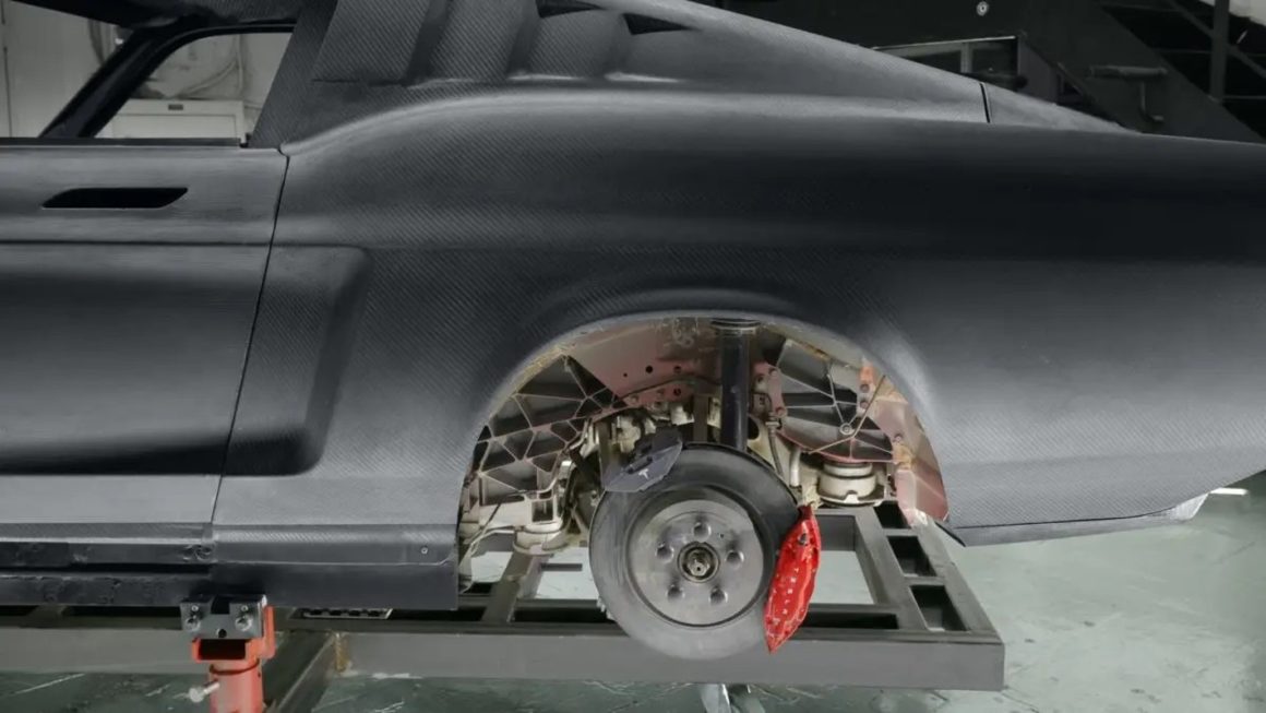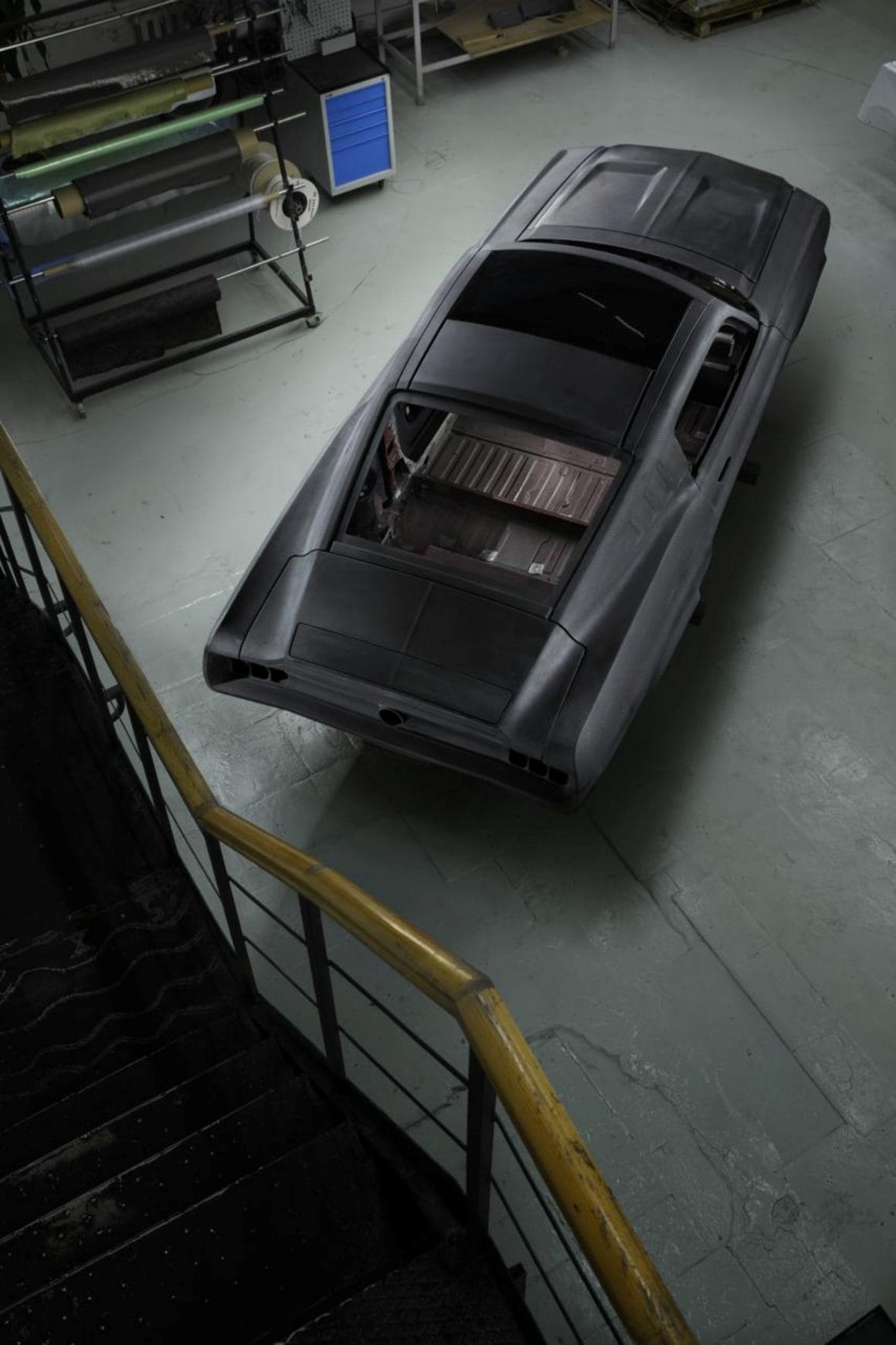 Évidemment, dans ce cas-ci, malgré que rien n’existe en réalité, il ne s’agit pas d’une voiture restaurée, mais bien d’un véhicule neuf (gag !) ayant des caractéristiques d’aujourd’hui (sic !) avec l’allure d’un muscle car d’il y a 50 ans ! Parmi les caractéristiques annoncées, notons une plate-forme en aluminium avec une carrosserie en fibre de carbone, l’engin disposant de la possibilité de la conduite semi-autonome, de la double motorisation, d’une suspension pneumatique, d’un écran de 17 pouces aux fins d’info divertissement (évidemment inspiré par Tesla), un système de navigation, un presse-fruit rétractable, une cocotte-minute, un percolateur ainsi que d’un rasoir électrique… pour n’énumérer que les accessoires les plus innovants…