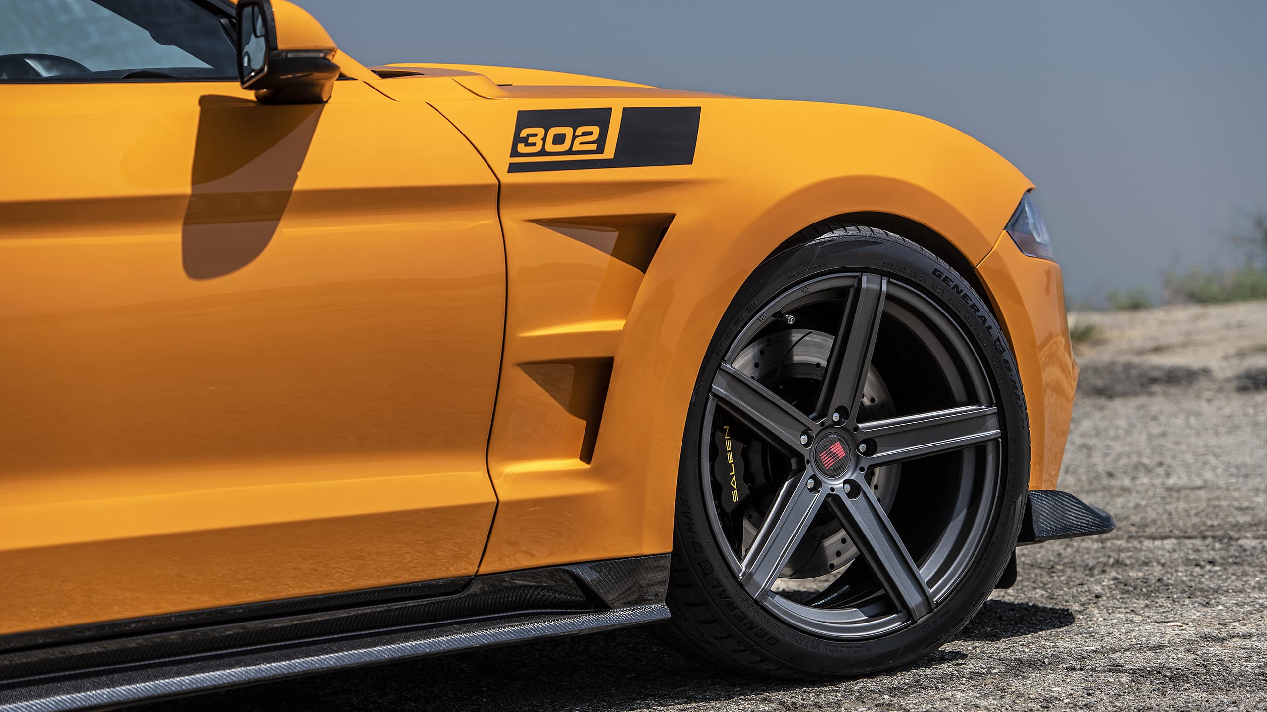 Trois versions de la Ford Mustang Saleen Boss 302 sont proposées en tant qu’alternatives aux Mustang Shelby : la White Label de 475 chevaux (47.000 $), la Yellow Label suralimentée de 740 chevaux (73.995 $, le même prix que pour la Shelby GT500 de 760 chevaux), et la Black Label de 800 chevaux (78.495 $).