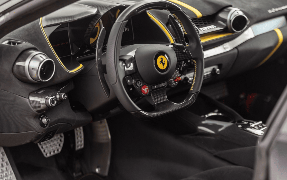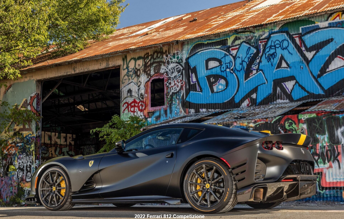 Je cause des casses-vitesses surnommés les gendarmes couchés… Avec seulement 354 miles affiché à l’odomètre, cette 812 Competizione se présente dans un état clinique style salle d’opération… Euhhhhhh… d’exposition… et n’a jamais été en de mauvaises mains auparavant. Le V-12 Ferrari à aspiration naturelle finale non hybride, est approprié à l’ultime sortie du modèle que Ferrari prétend être le plus convoité du monde automobile…
