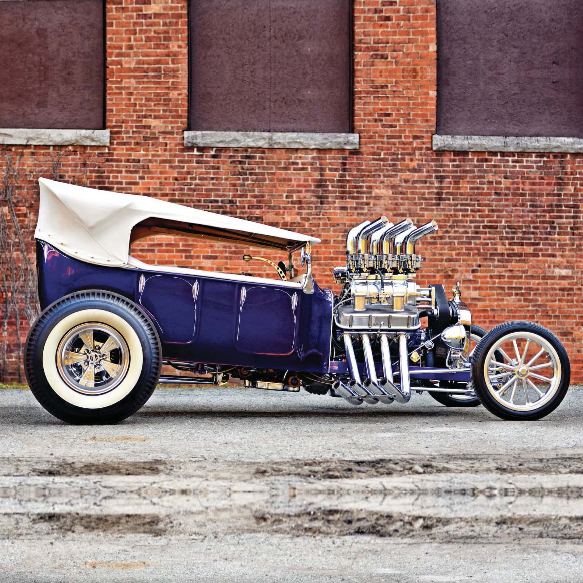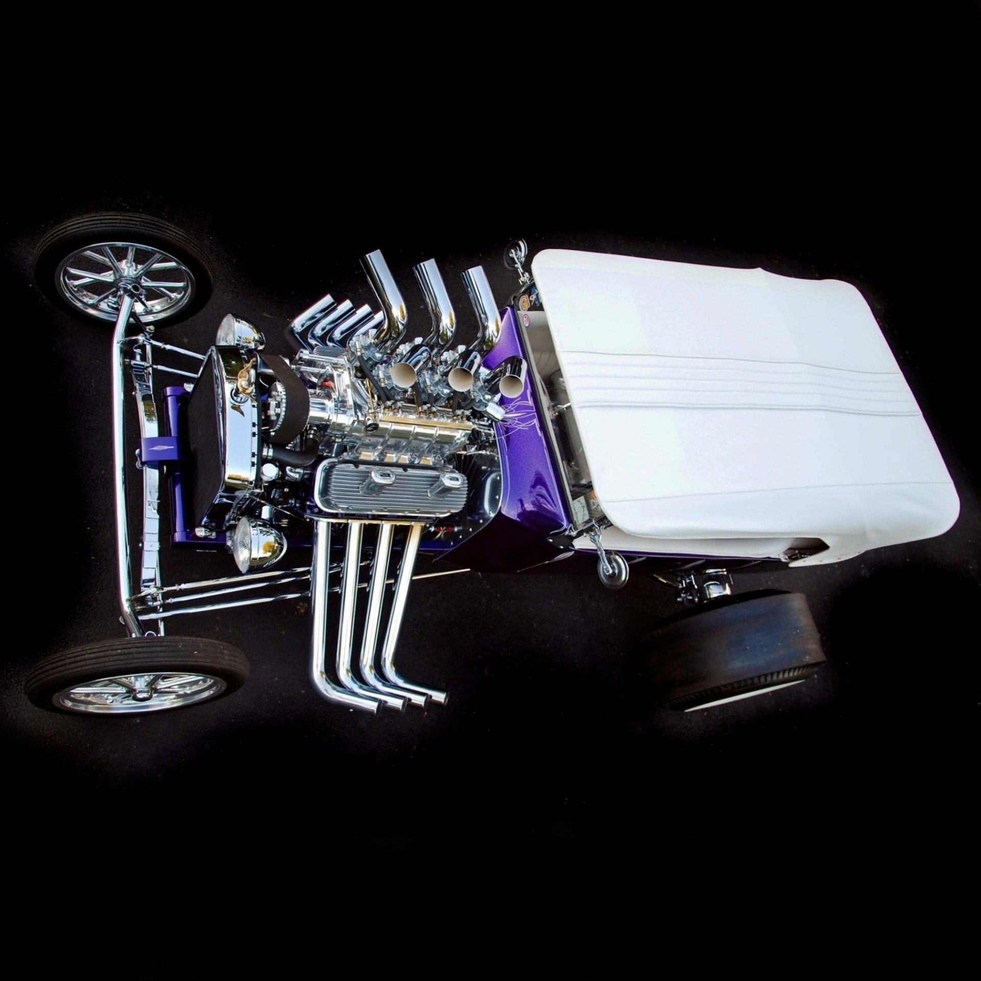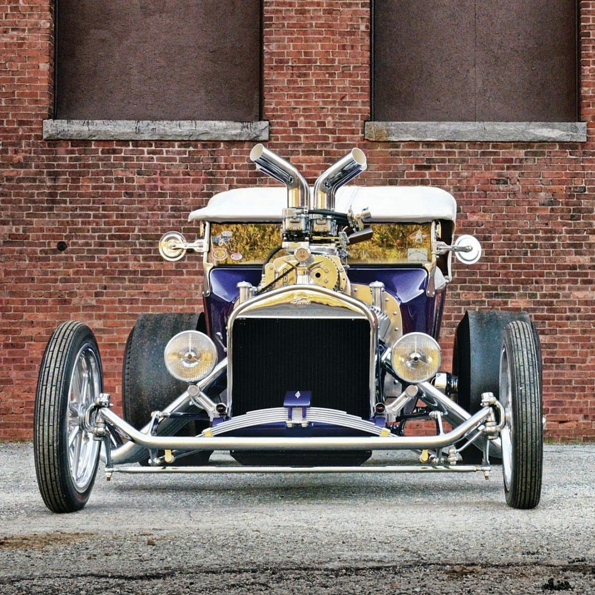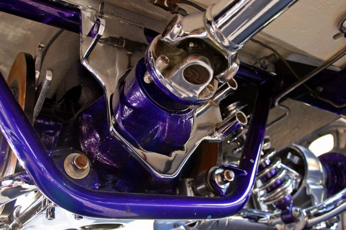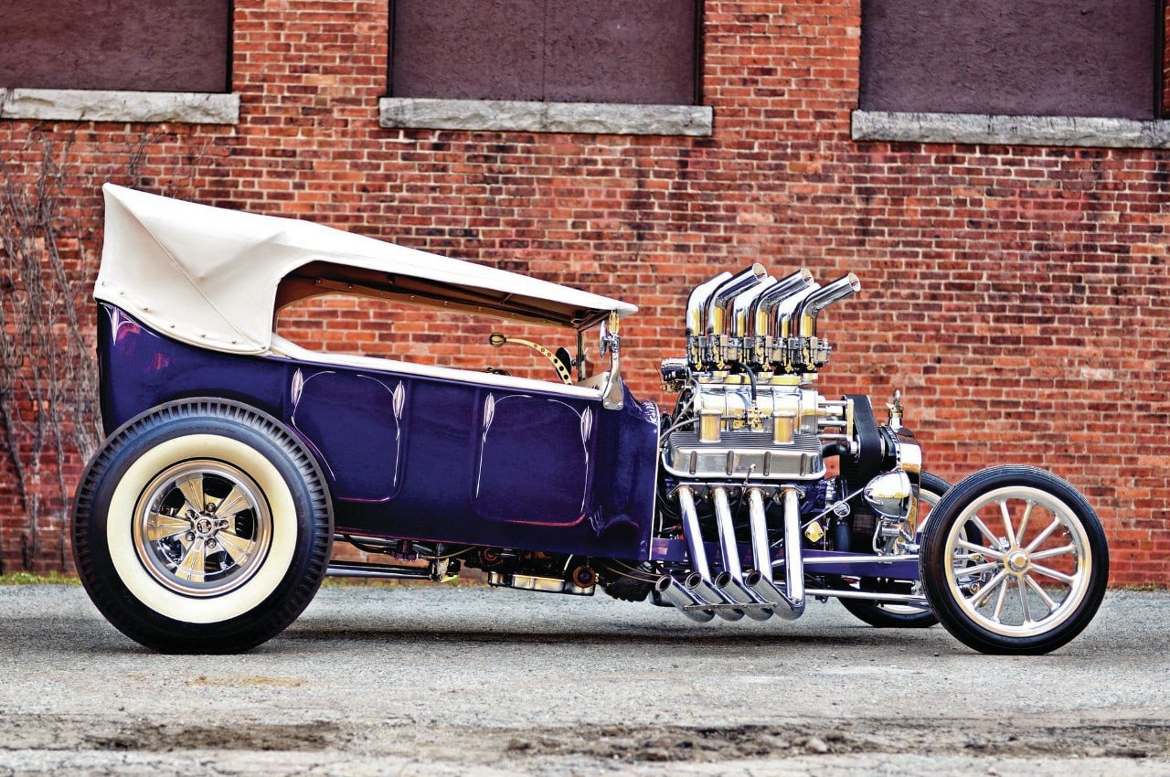 D’ailleurs, en “bon” rital-américain, durant l’hiver 1997, il a voulu reconstruire le Rod et a préparé (seul) la voiture pour cela. Étonnamment, ses deux amis ont laissé faire… et, la première chose qui a été changée fut le moteur : “J’ai acheté un 402ci Chevy big-block et ajouté un blower 6-71”…, m’a dit Mario, ajoutant qu’il avait acheté des pièces Dean Moon… La touche finale étant la couleur, Mario ayant choisi un “Kolor candy UK-17 violet” vaporisé sur une couche de base “BC-04 Shimrin bleu”. La voiture fut prête juste à temps pour assister au deuxième Goodguys annuel à Columbus, en Ohio, en 1999, où il a obtenu le premier prix.