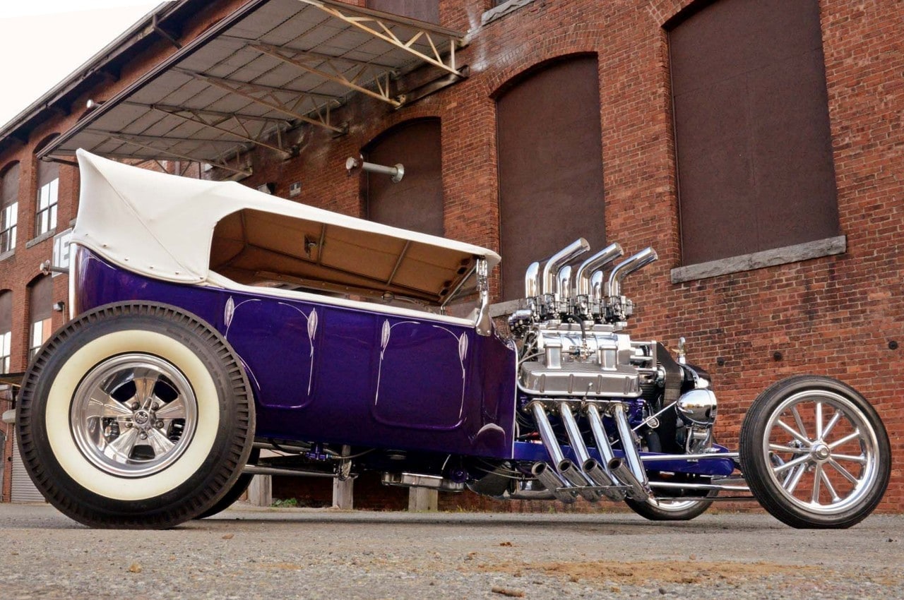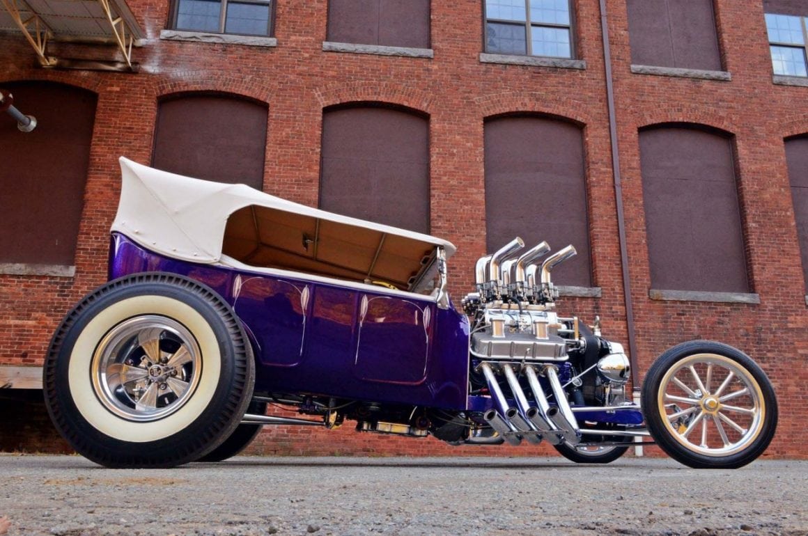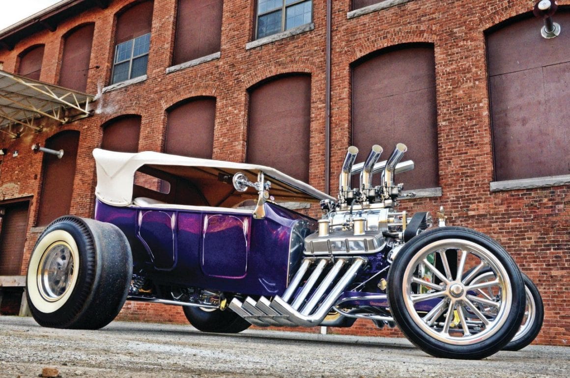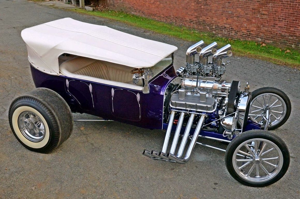 Ça tombait bien, Dieu l’avait entendu…, mais Mario angoissait quand même un peu à l’idée d’aller bouffer son kebab seul avec Johnny…, quoique ce serait sympa de pouvoir médire de Danny et sa nana. Bref. ce conte en arrive à l’histoire du Hot-Rod qui au début était un “ramasse minettes midstream”, construit dans le garage de Steve Archer, dédié aux Hot-Rods, situé dans le nord du New Jersey… C’était un “bazar” au look de Ford 1923’T-Touring, de couleur “vert jade” dont le bruit du moteur jouait comme une symphonie de Chevy big-block…