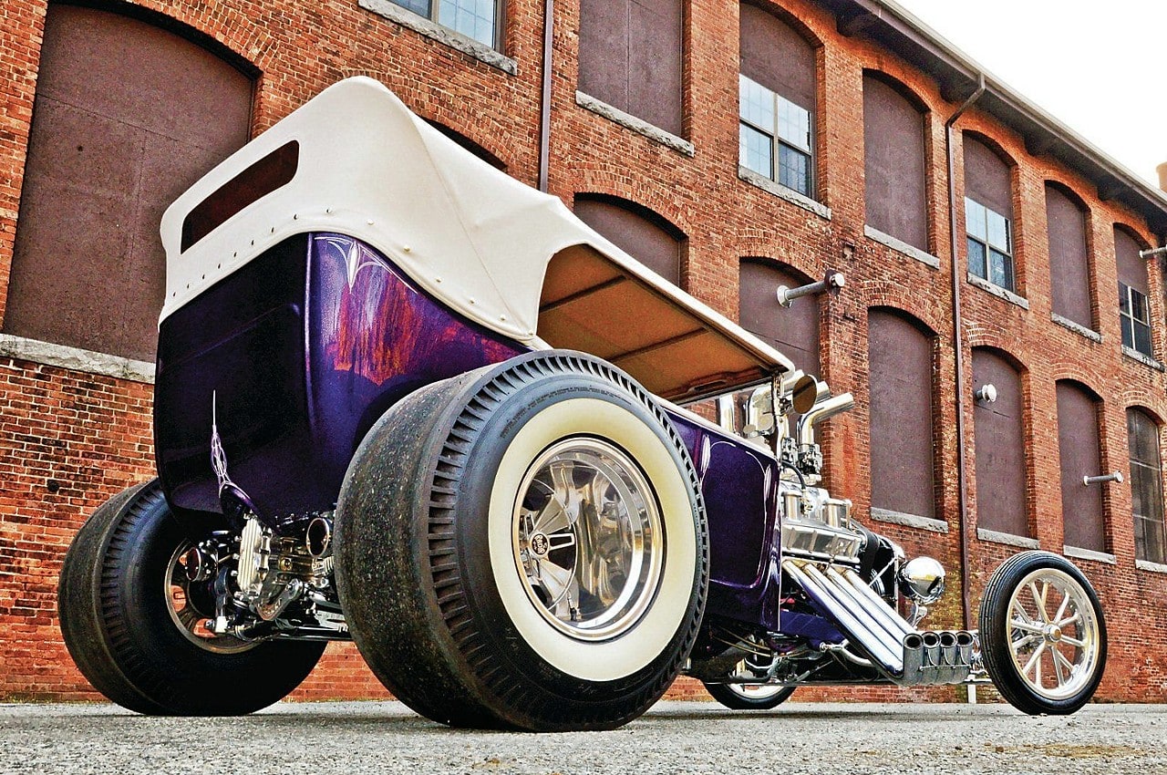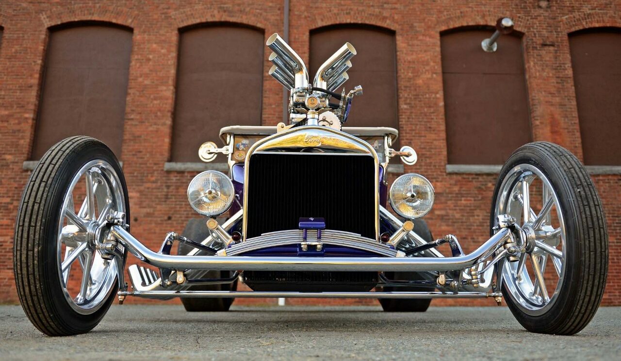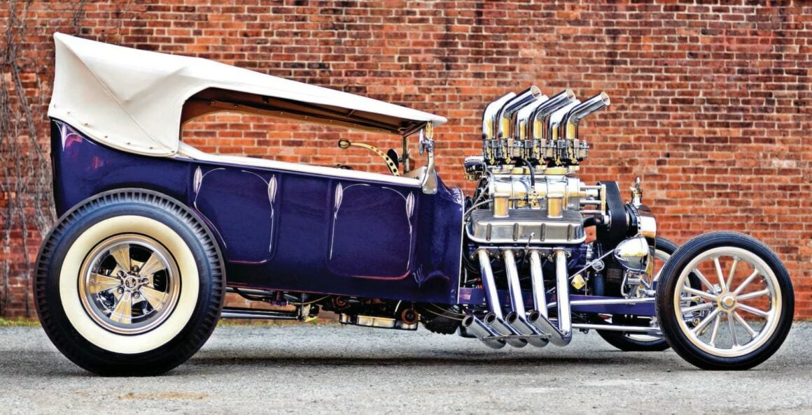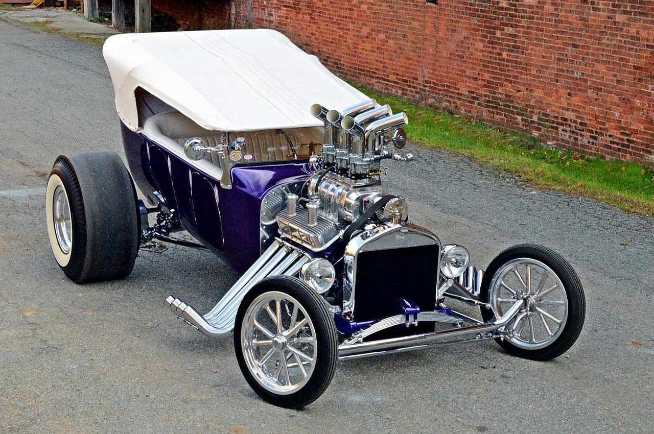 Ça tombait bien, Dieu l’avait entendu…, mais Mario angoissait quand même un peu à l’idée d’aller bouffer son kebab seul avec Johnny…, quoique ce serait sympa de pouvoir médire de Danny et sa nana. Bref. ce conte en arrive à l’histoire du Hot-Rod qui au début était un “ramasse minettes midstream”, construit dans le garage de Steve Archer, dédié aux Hot-Rods, situé dans le nord du New Jersey… C’était un “bazar” au look de Ford 1923’T-Touring, de couleur “vert jade” dont le bruit du moteur jouait comme une symphonie de Chevy big-block…