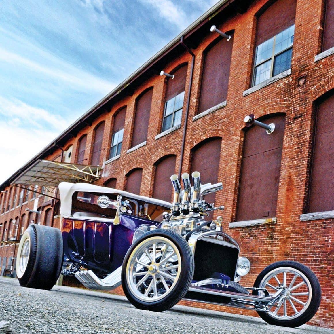 On va aller droit au but, le Hot-Rod qui illustre mes mots, a fini par être la propriété de Mario Colasuonno, vous lirez comment c’est arrivé plus loin… Si vous y arrivez… Ce Hot-Rod, c’est un putain de chef d’œuvre qui file le vertige, magnifique, à chialer de bonheur malgré qu’il est photographié en privilégiant un décor d’usine plus ou moins désaffectée, entre une ancienne centrale électrique et une décharge d’ordures, créant l’illusion d’un univers futuriste à peu près cohérent, perdu dans l’Amérique profonde qui dérive en attente d’une déflagration…