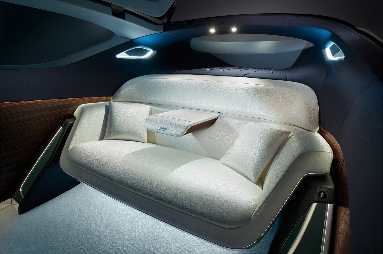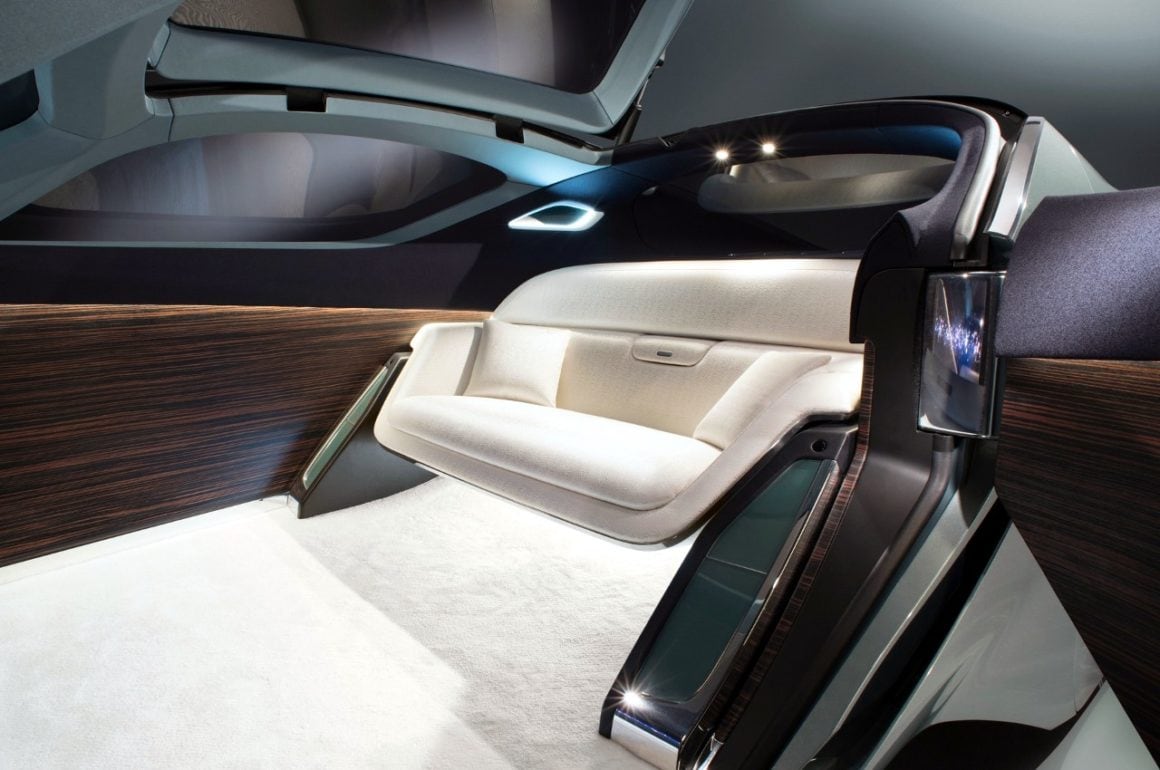 Ne cherchez pas le volant, ni de quelconque commandes, il n’y en a pas…, cette Rolls du 22 ième siècle offre une conduite autonome en toutes circonstances…, dans 100 ans, l’arrière-arrière-petit-fils de votre actuel chauffeur se retrouvera sans emploi…