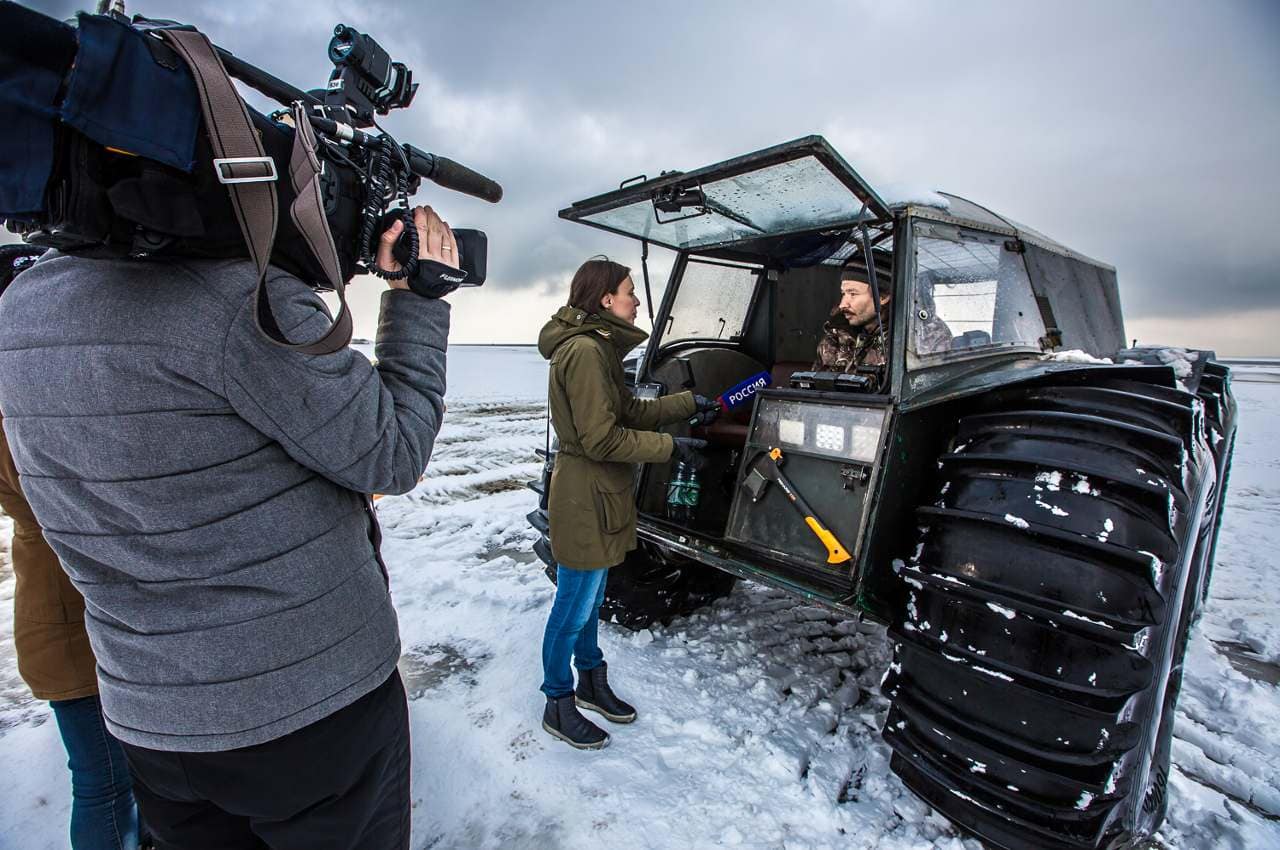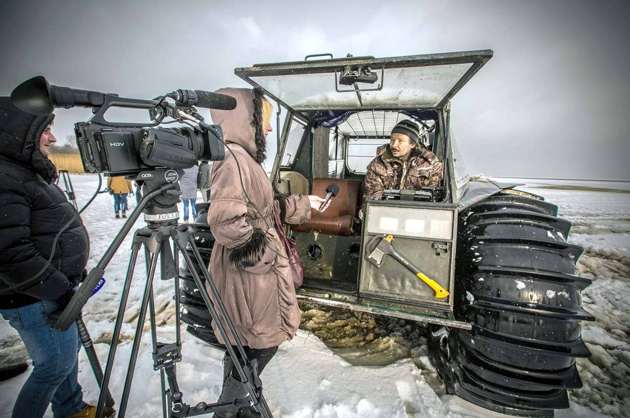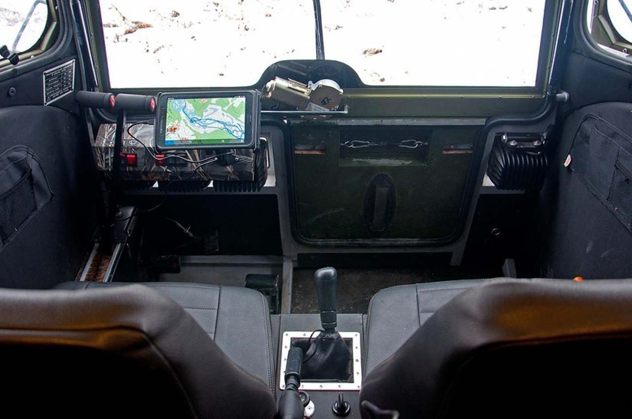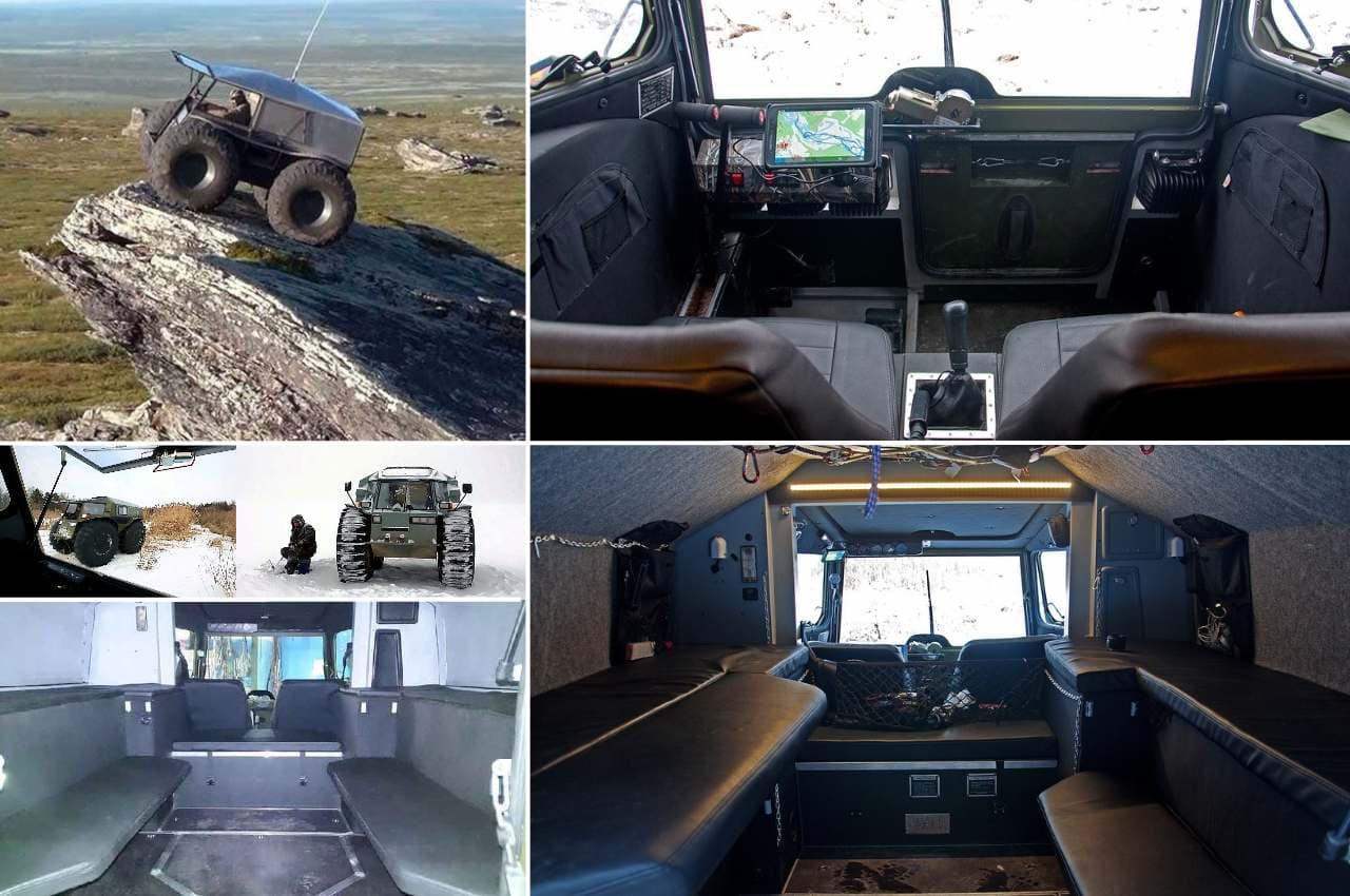 -“La caractéristique principale de ce type de véhicules est leurs pneus”, m’a expliqué Alexeï Garagachian.. “Plus ils sont gros, plus les capacités de franchissement sont importantes et mieux il flottera. Mais je n’ai jamais vu de tout-terrain pouvant faire autant de choses que le nôtre”…
