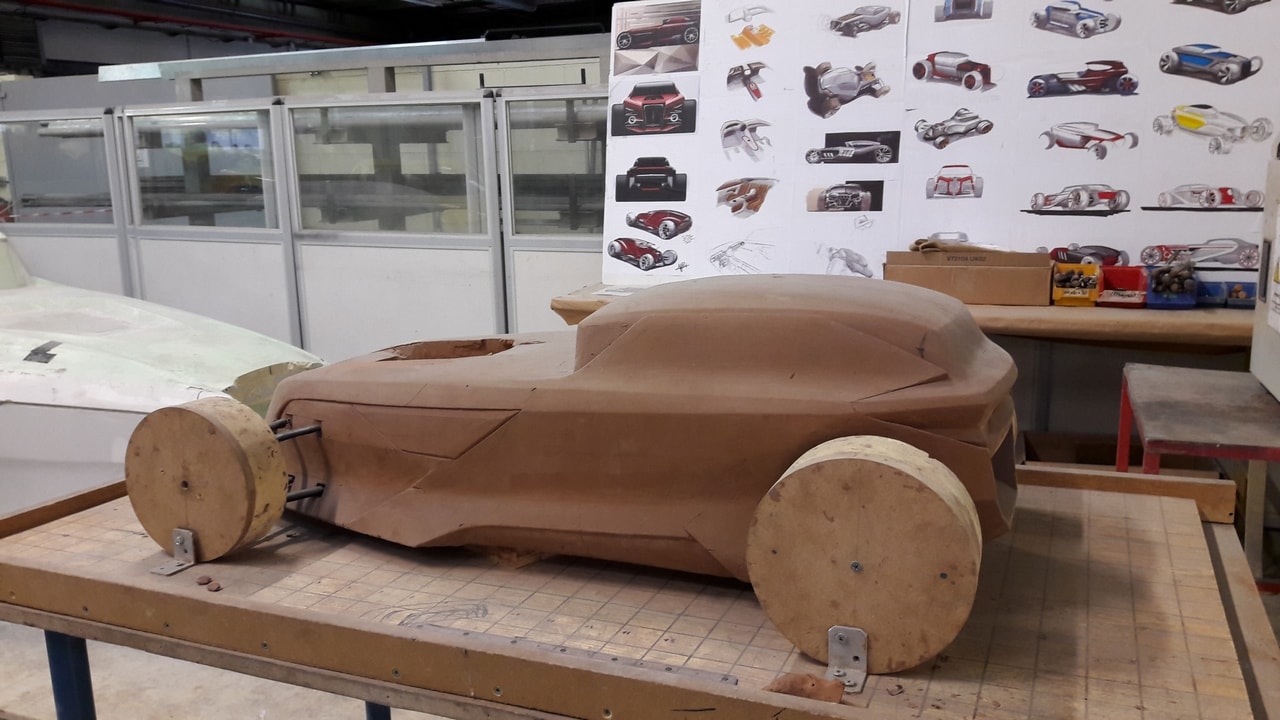 Sur le stand Sbarro à Genève en mars dernier, c’est donc assez ébahi que j’ai découvert la réalisation marquant le travail de fin d’études de la promotion 2016-2017 de l’école ESPERA (Ecole Sbarro Prototypage Etude Réalisation Automobile) de Montbéliard. A la fin de l’année 2016, les élèves ont reçu une sorte de « cahier de charges » précisant quel serait le thème du projet de fin d’études…, chacun a ainsi pu donner ses idées tout en dessinant à quoi devait ressembler ce « hot rod » tout en fournissant une maquette. Un comité a sélectionné les meilleures réalisations tout en se focalisant sur le meilleur projet, la machine était lancée, un véritable travail d’équipe mais également une belle course contre la montre.
