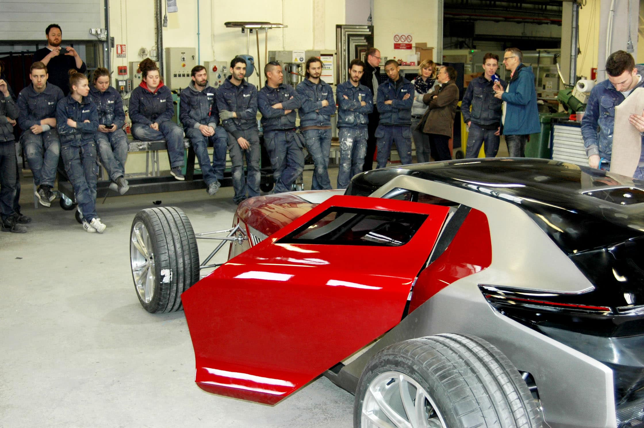 Ce que j’ai ressenti en visitant cette école et surtout en rencontrant ces élèves, c’est que rien ne remplace une petite équipe soudée, hyper motivée s’impliquant à fond dans un projet commun et qui n’a surtout pas peur de mouiller leur chemise. Juste avant la présentation à la presse ainsi qu’au public du salon de Genève, récompense ultime de leur savoir-faire à travers ce prototype Mojave, c’était un peu la course à l’école Espera Sbarro : durant 35 heures, ces élèves ont œuvré en mode « non-stop « afin que Mojave soit prêt à temps. Pari gagné haut la main, c’était à mon humble avis l’un des coups de cœur de l’expo helvétique. Franco Sbarro, du haut de ses 78 ans, semblait tout à fait rayonnant tout en cachant derrière ce sourire permanent une immense fierté, celle d’avoir été un maître d’école hors normes, celui qui sait transmettre aux futures générations tout son immense savoir.