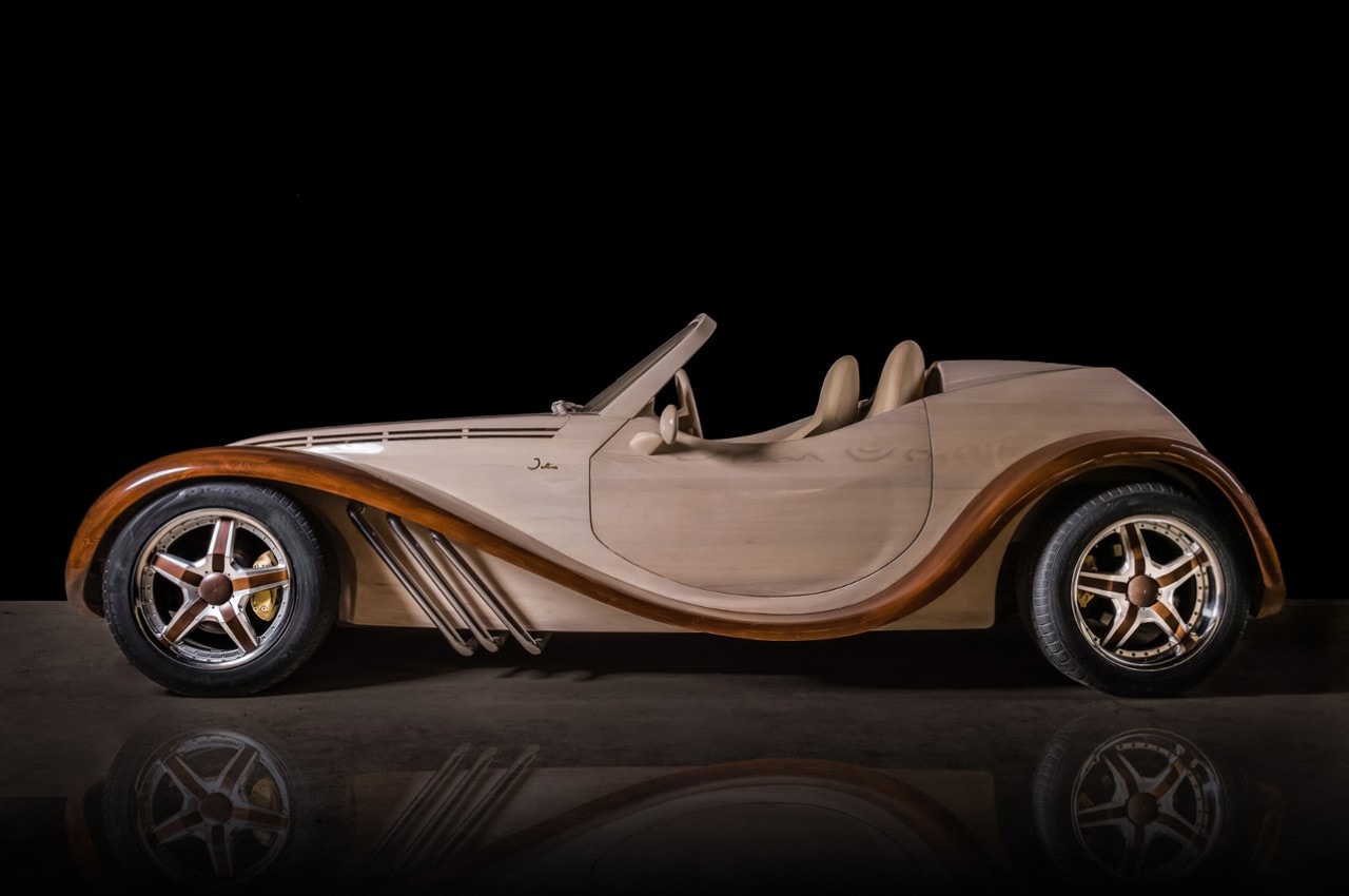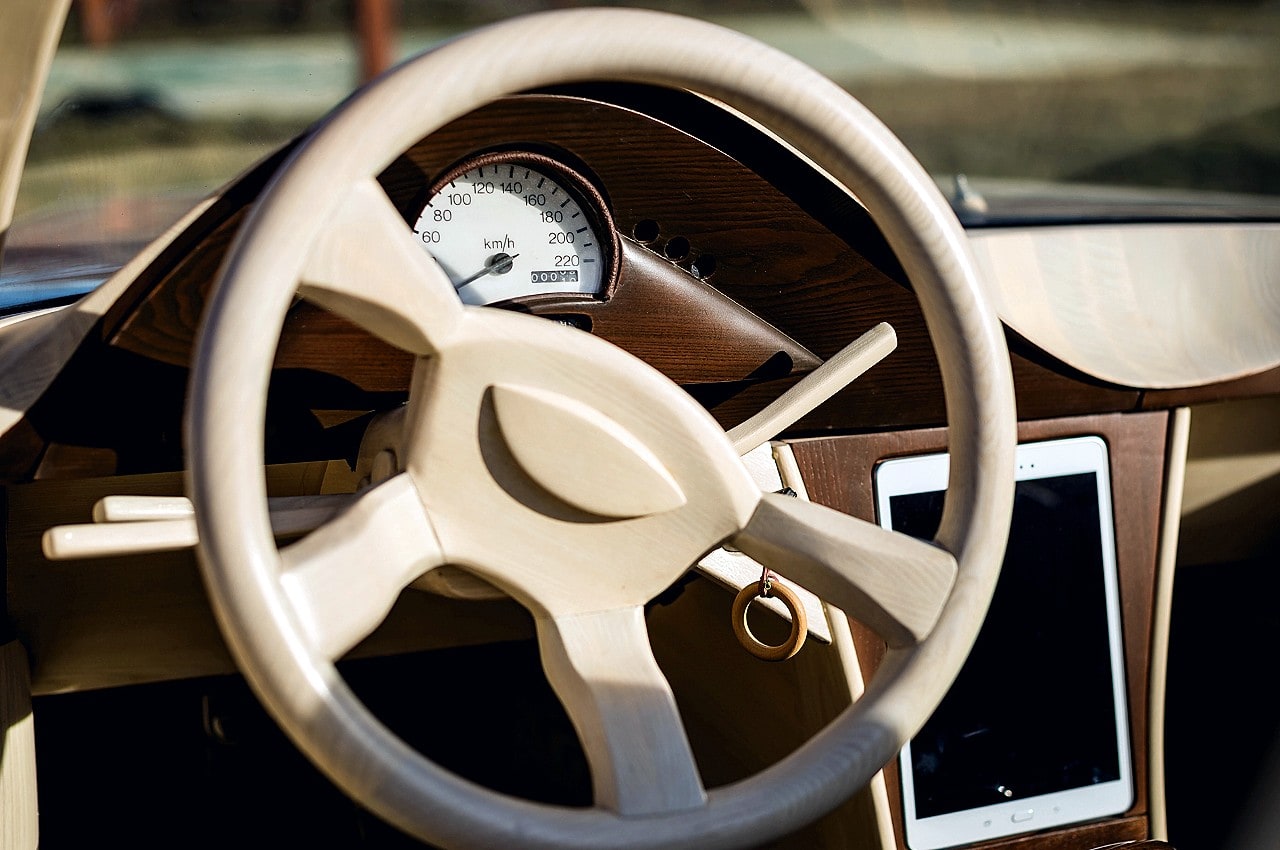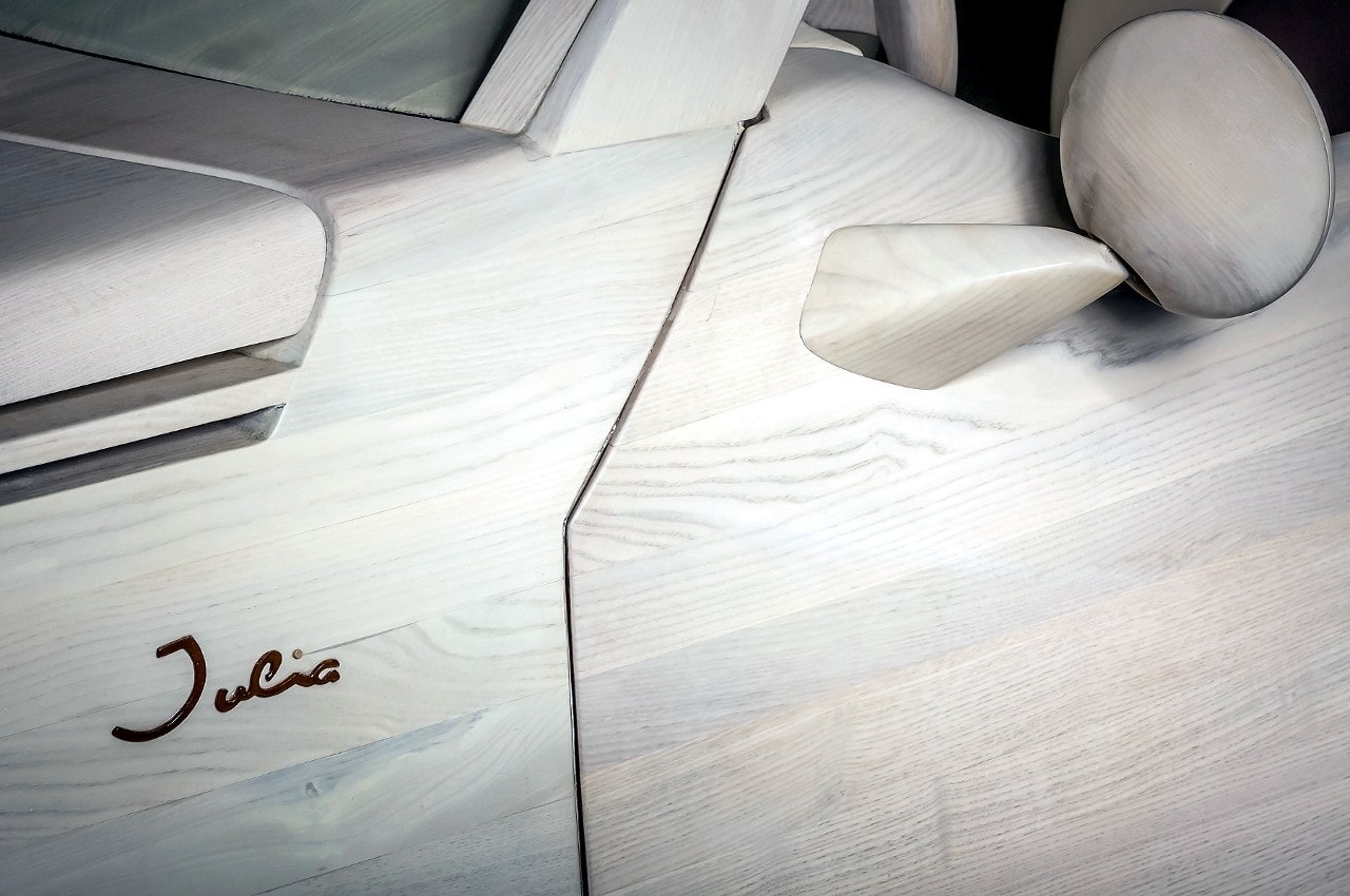 Cette voiture en bois, qu’il a nommée “Julia”, le nom de sa première petite amie avec laquelle il a vécu son premier rapport sexuel, est donc un projet de menuiserie qui a exigé plus de 4.500 heures étalées sur trois ans et à coûté 20.000 euros de bois de frêne.