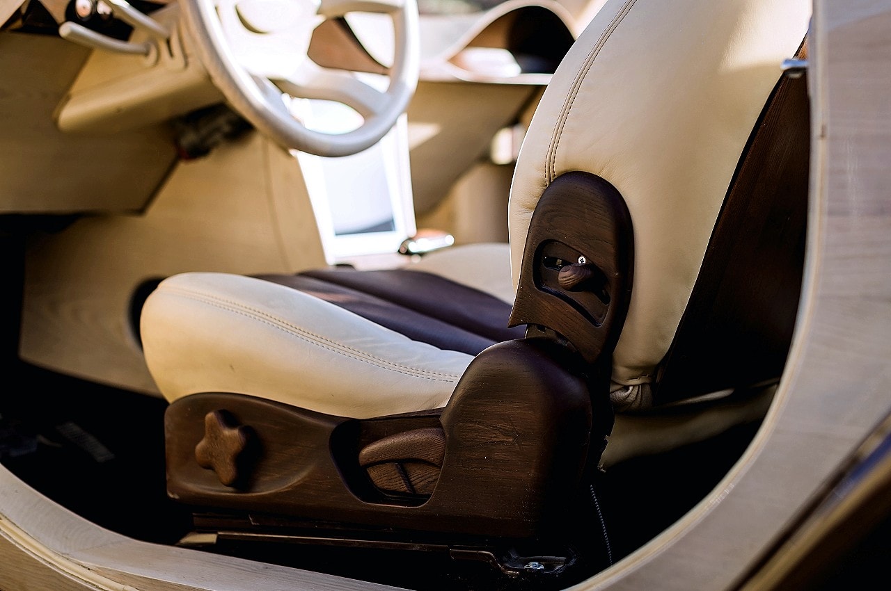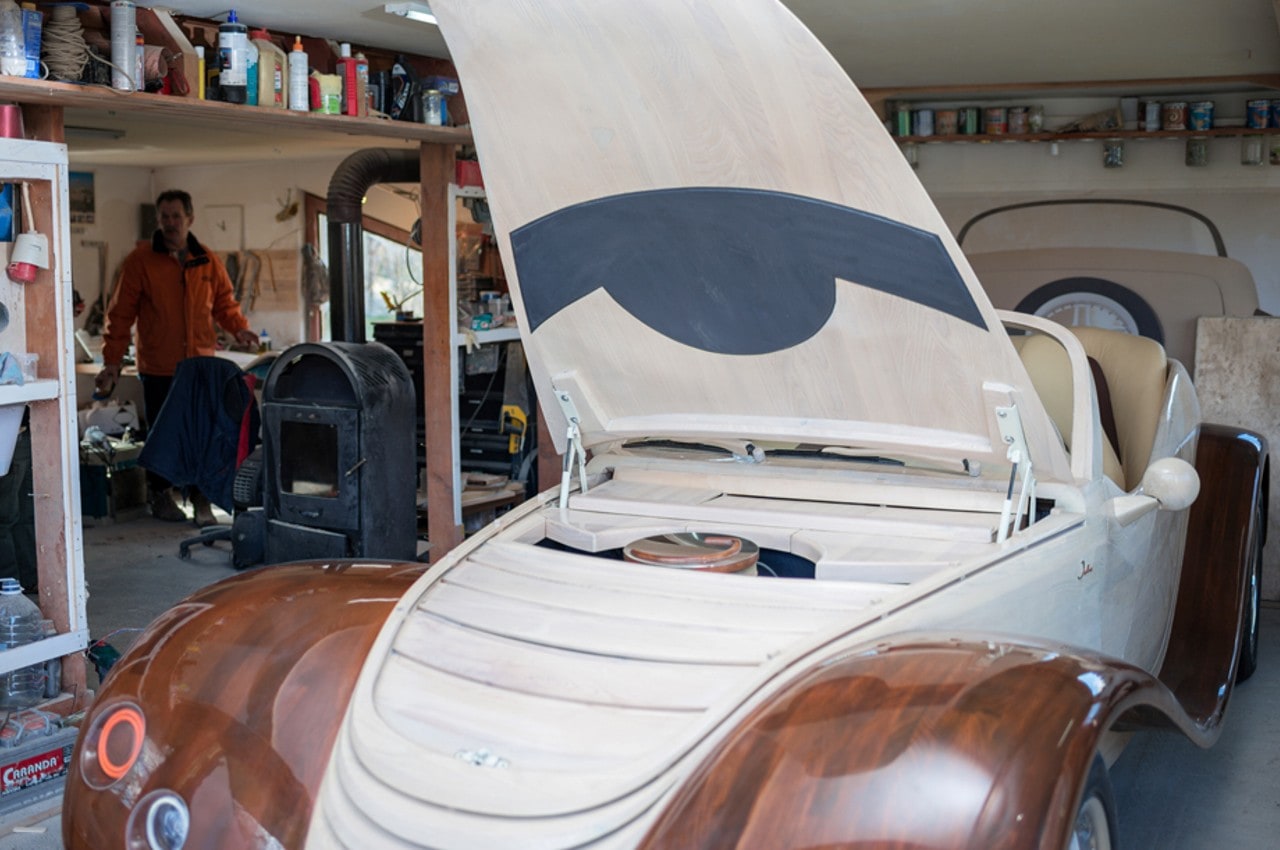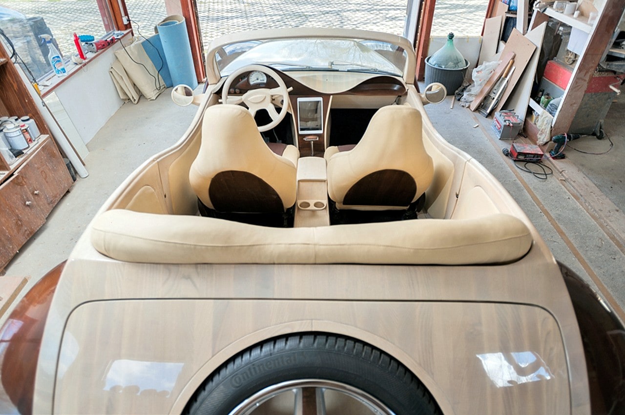 Cette voiture en bois, qu’il a nommée “Julia”, le nom de sa première petite amie avec laquelle il a vécu son premier rapport sexuel, est donc un projet de menuiserie qui a exigé plus de 4.500 heures étalées sur trois ans et à coûté 20.000 euros de bois de frêne.