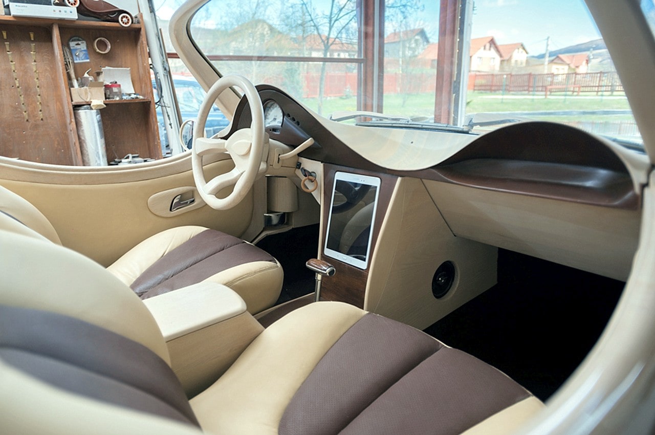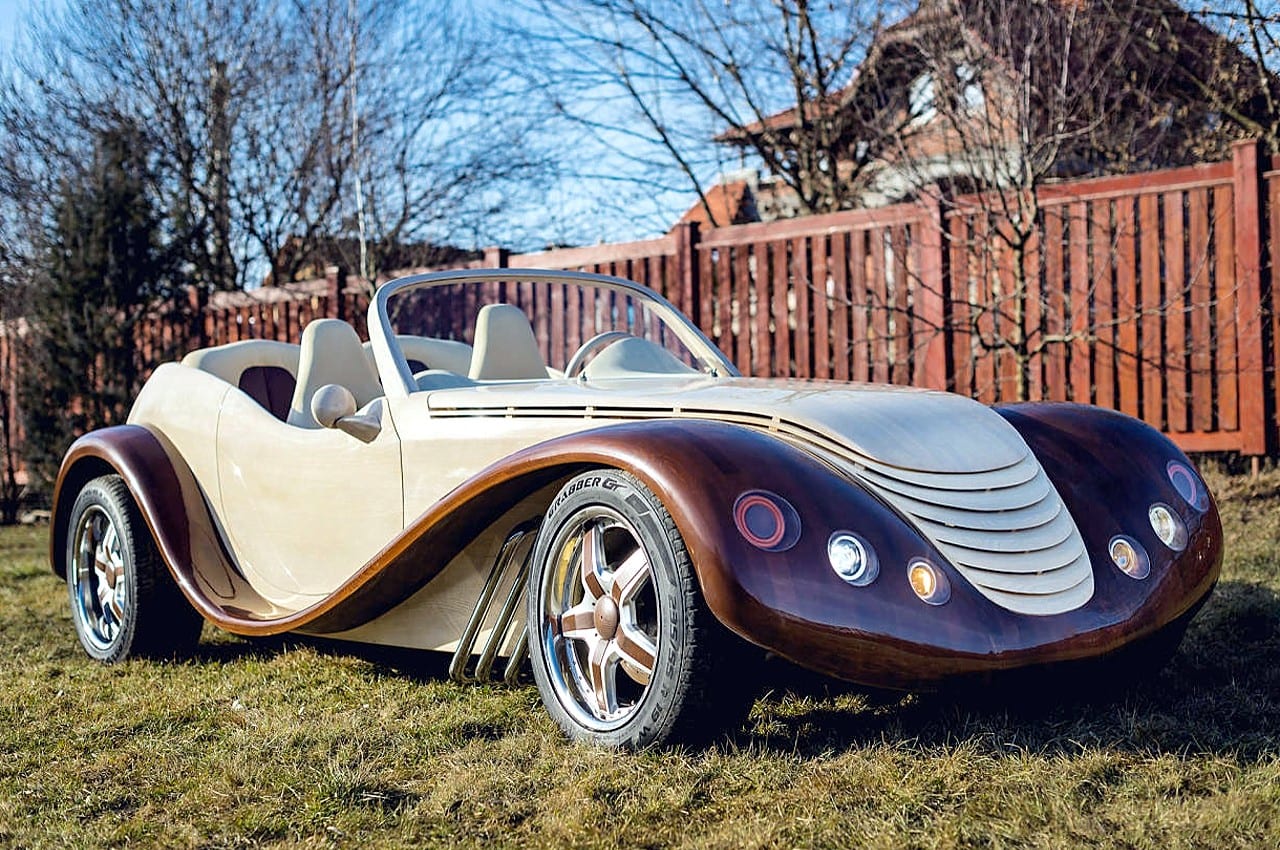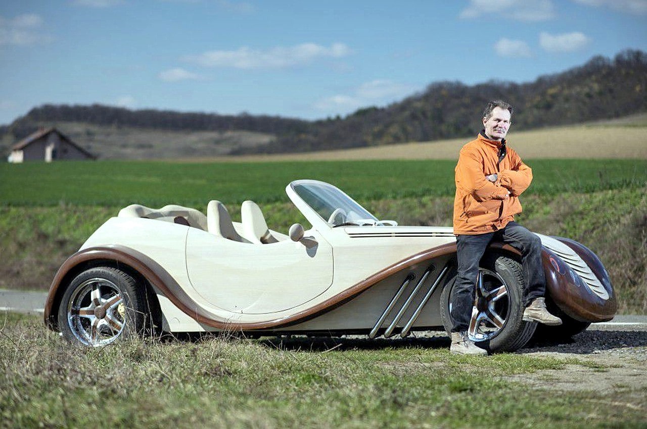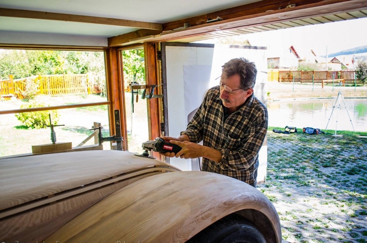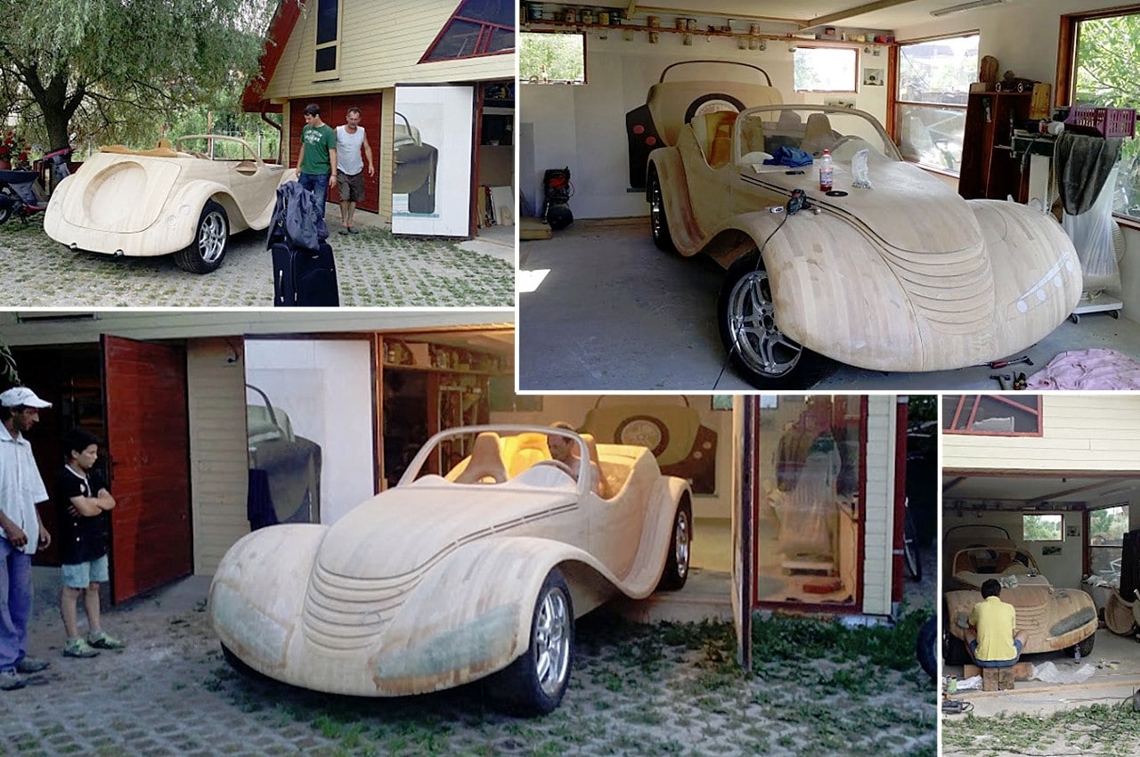 Il s’agit de Peter Szabo, un Roumain de Roumanie, fanatique de voitures soviétiques, qui a décidé de combiner la menuiserie avec la technologie moderne pour créer une voiture en bois d’arbre…, capable d’une vitesse de croisière de 85 km/h.