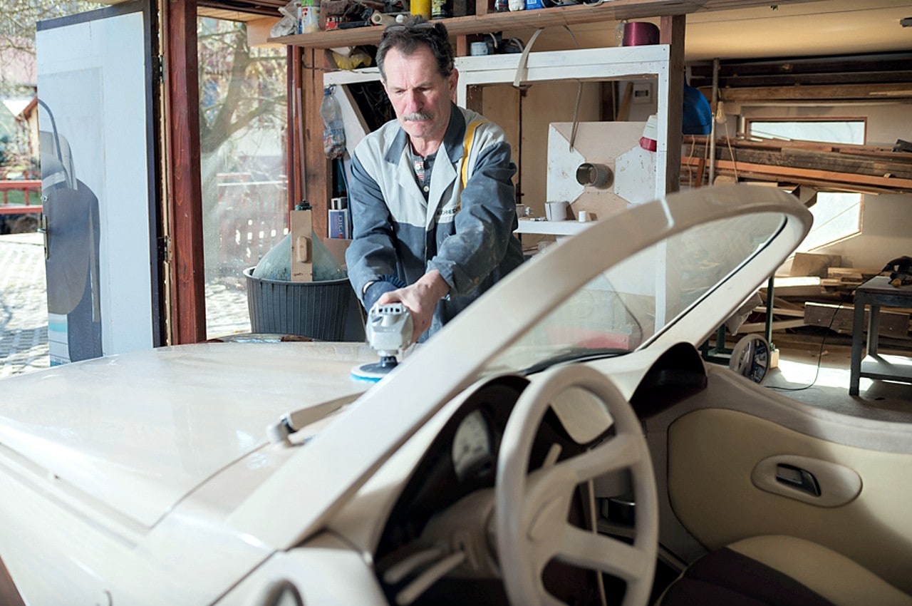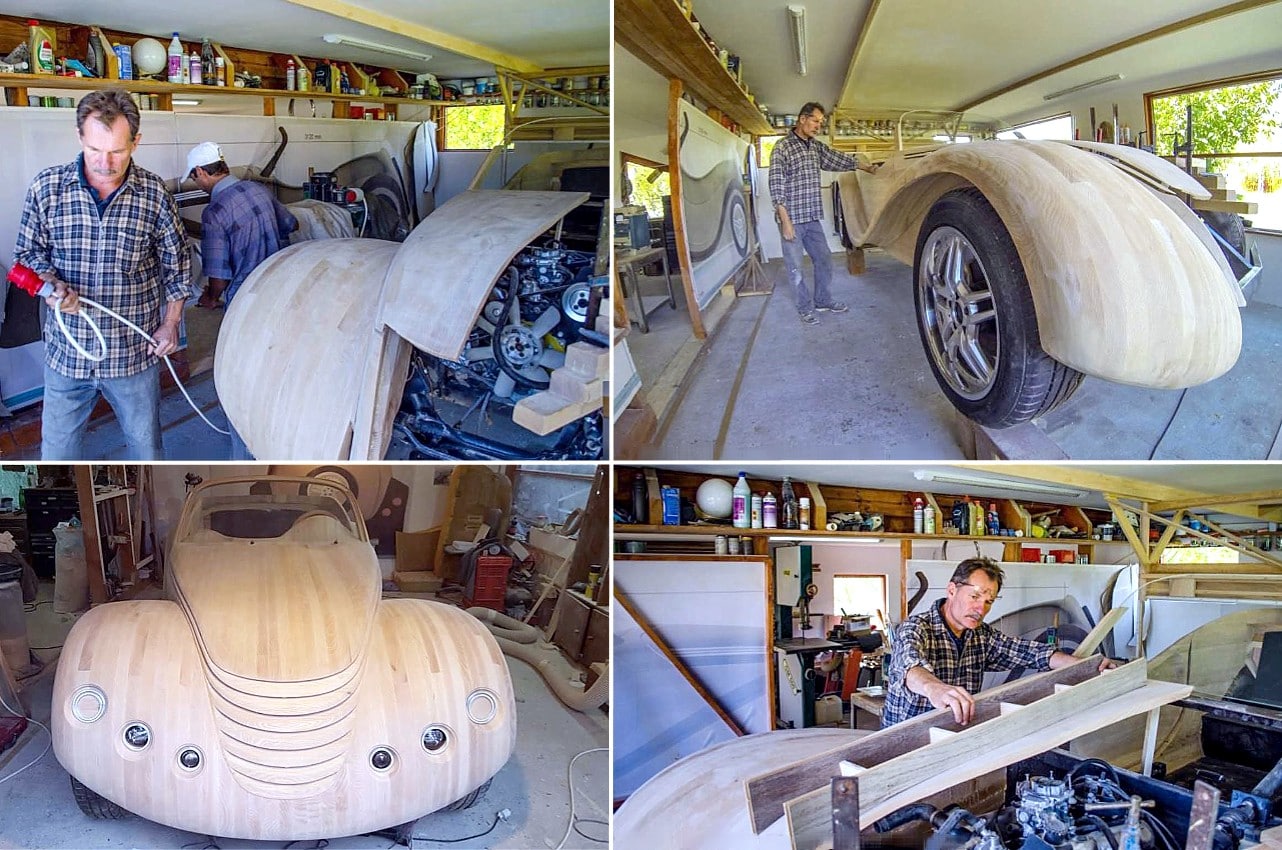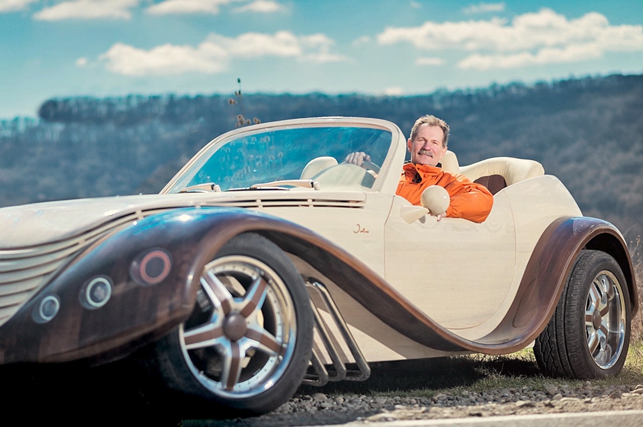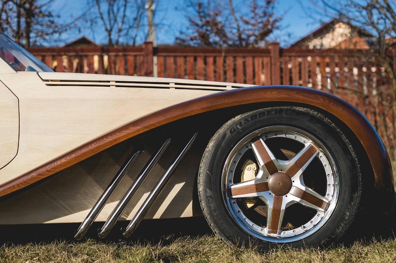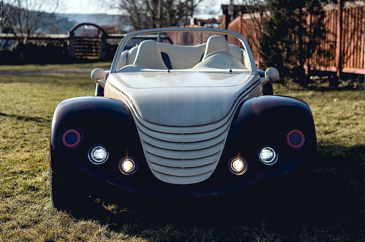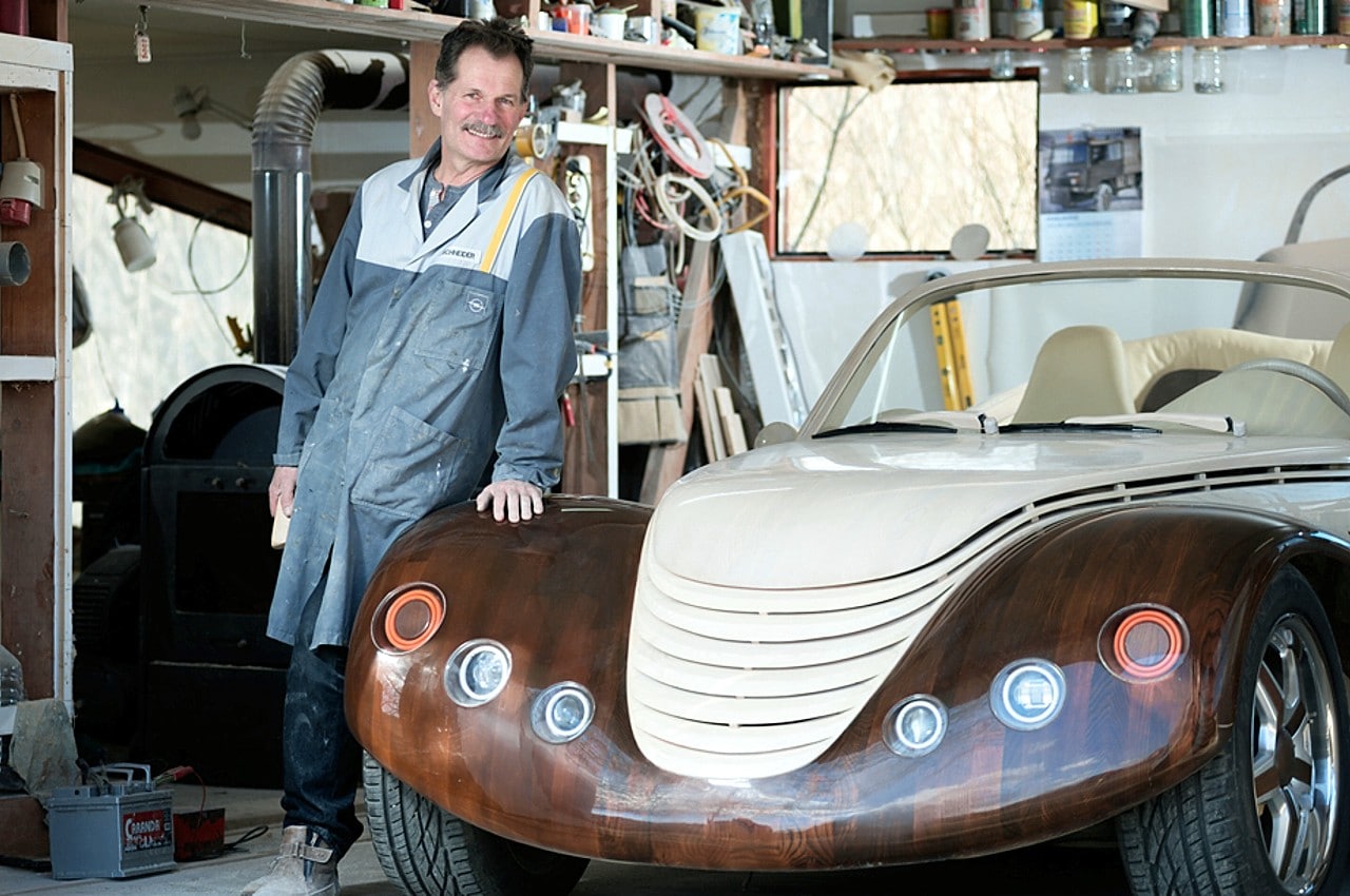 Il s’agit de Peter Szabo, un Roumain de Roumanie, fanatique de voitures soviétiques, qui a décidé de combiner la menuiserie avec la technologie moderne pour créer une voiture en bois d’arbre…, capable d’une vitesse de croisière de 85 km/h.